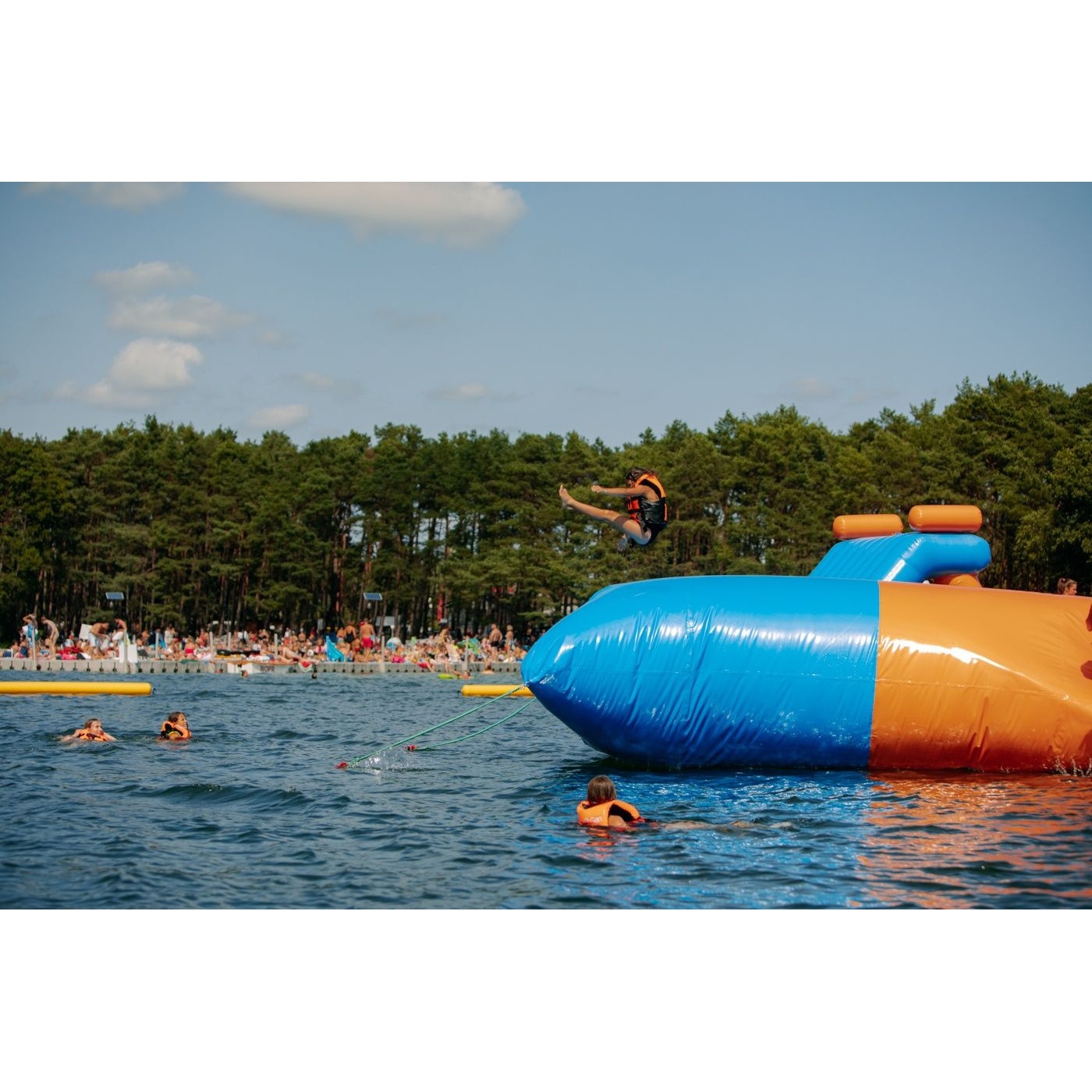Το μαξιλάρι άλματος Blob είναι μια συναρπαστική ατραξιόν, ιδανική για παιχνίδια στο νερό, που προσφέρει μια αξέχαστη εμπειρία στους συμμετέχοντες που πηδούν στο μαξιλάρι, προκαλώντας την εκτόξευση άλλων στον αέρα. Μπορεί να χρησιμοποιηθεί τόσο σε μεγαλύτερα υδάτινα πάρκα όσο και ως αυτόνομη ατραξιόν. Κατασκευασμένο από ανθεκτικό PVC, είναι ανθεκτικό και διασφαλίζει την ασφάλεια κατά τη χρήση. Η αντλία δεν περιλαμβάνεται στο προϊόν.