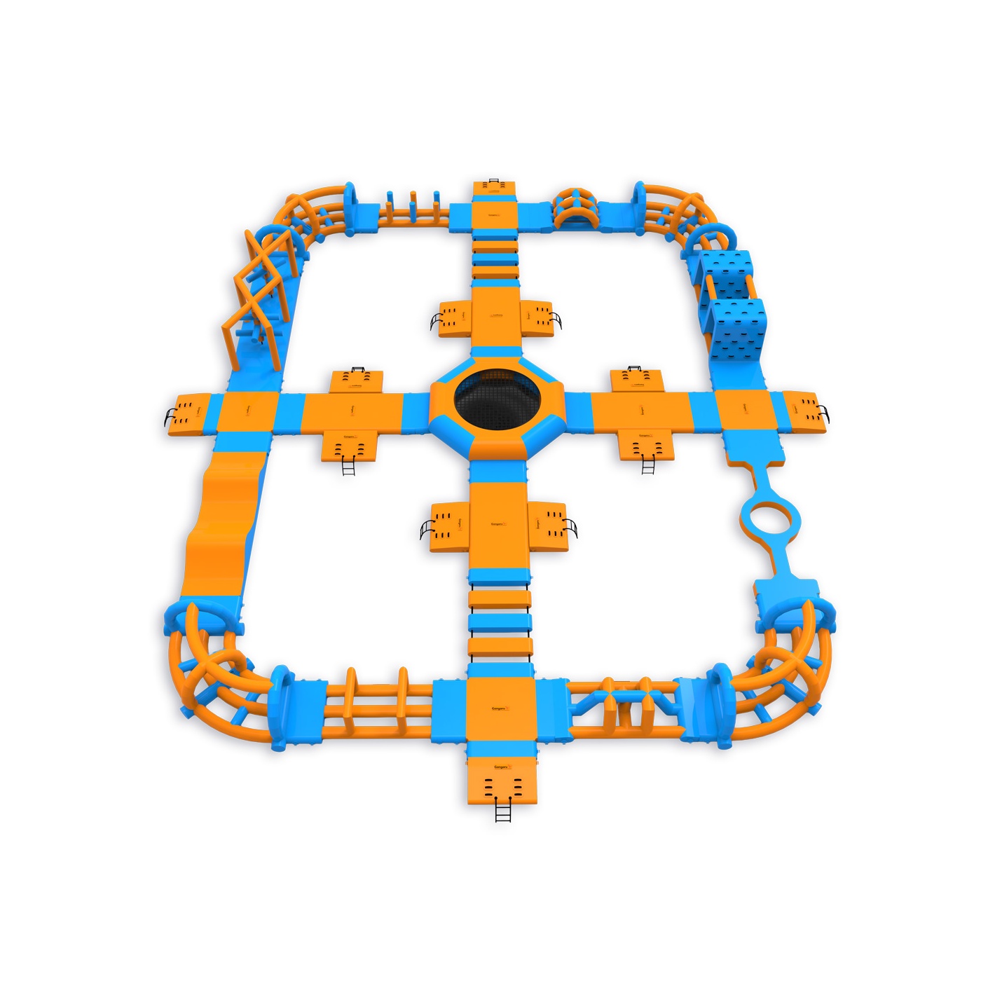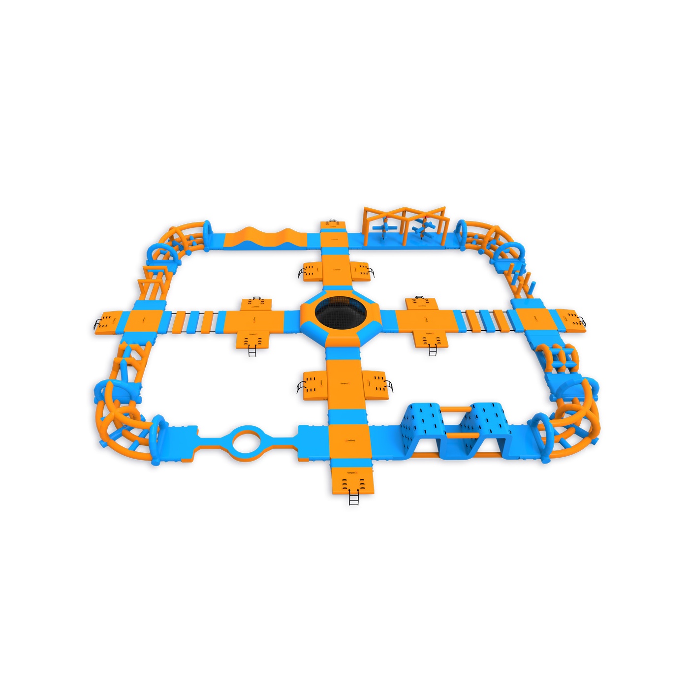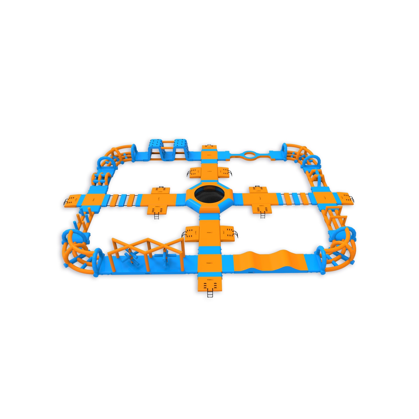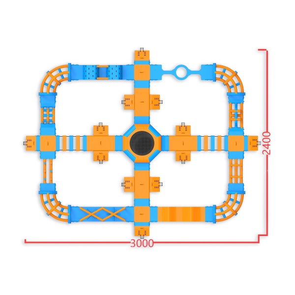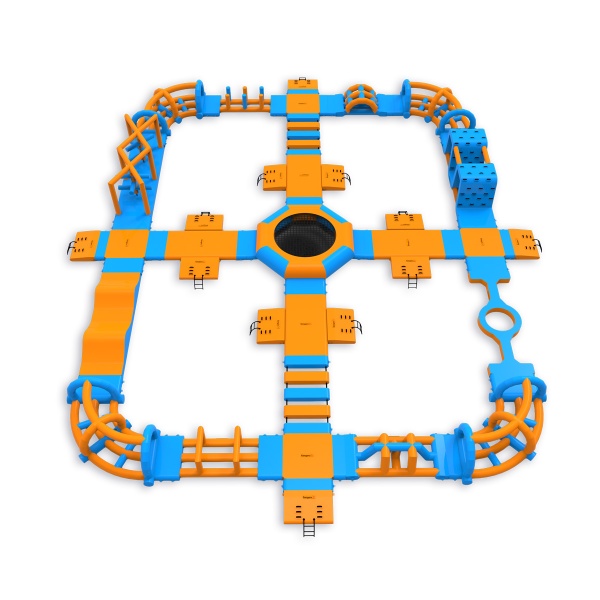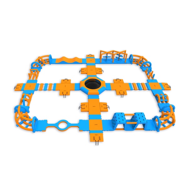 Ένα τραμπολίνο στην καρδιά του πάρκου - ένα στοιχείο που προσελκύει τους συμμετέχοντες και οργανώνει την κίνηση σε ολόκληρη τη διάταξη. Μια περιμετρική διαδρομή εμποδίων με πλατφόρμες, στοιχεία αναρρίχησης, γέφυρες και λόφους παρέχει συνεχή δραστηριότητα για ομάδες έως και 76 ατόμων ταυτόχρονα. Λειτουργεί καλά σε υδάτινους χώρους μεσαίου μεγέθους, όπου είναι σημαντικός ο υψηλός κύκλος εργασιών και η πλήρης αξιοποίηση της εποχής.