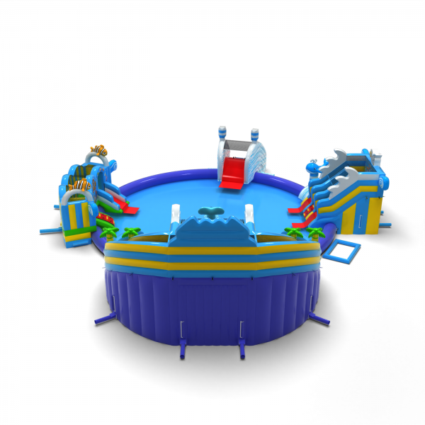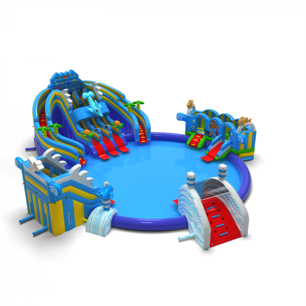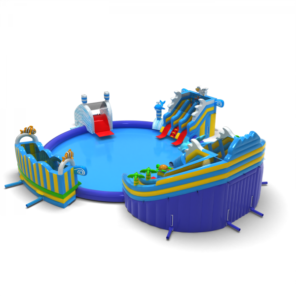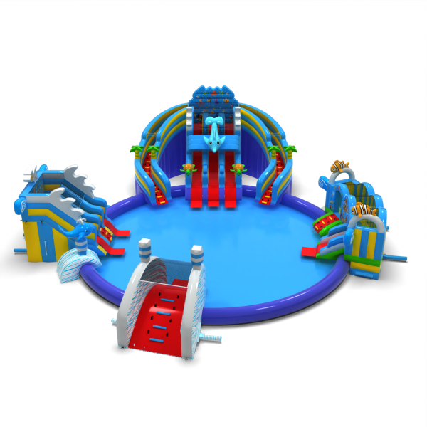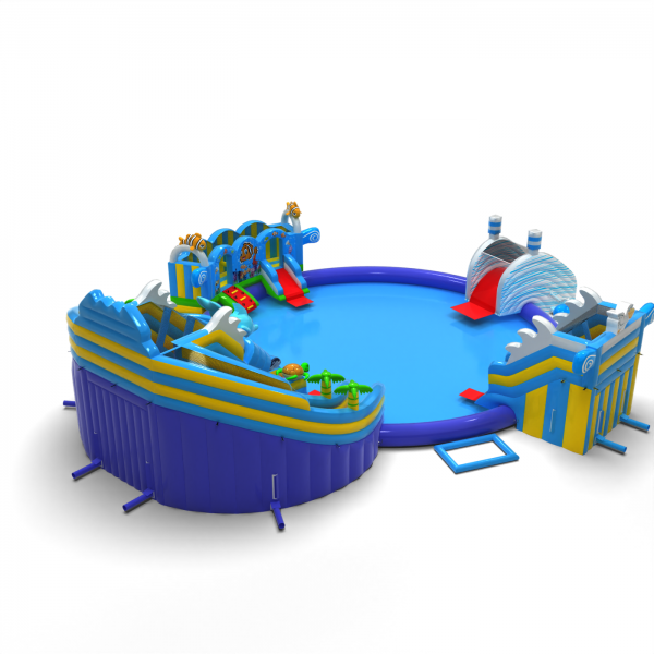 Το φουσκωτό υδάτινο πάρκο Hawaiian Lagoon είναι ένα μοναδικό αξιοθέατο που συνδυάζει μια τροπική ατμόσφαιρα με υδάτινες περιπέτειες. Η μεγάλη πισίνα, οι νεροτσουλήθρες και η διακόσμηση εμπνευσμένη από τη θάλασσα δημιουργούν το τέλειο μέρος για υπαίθρια διασκέδαση. Είναι η τέλεια επιλογή για εκδηλώσεις που θα προσελκύσουν την προσοχή και θα προσφέρουν αξέχαστες συγκινήσεις στους συμμετέχοντες. Το προϊόν περιλαμβάνει μια ηλεκτρική αντλία Pk-501 με ισχύ 1000 W.
