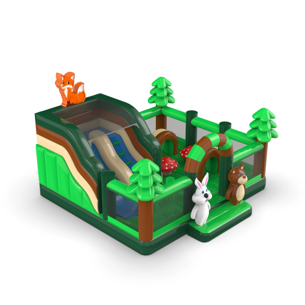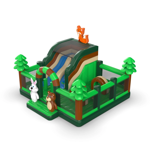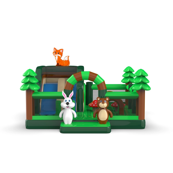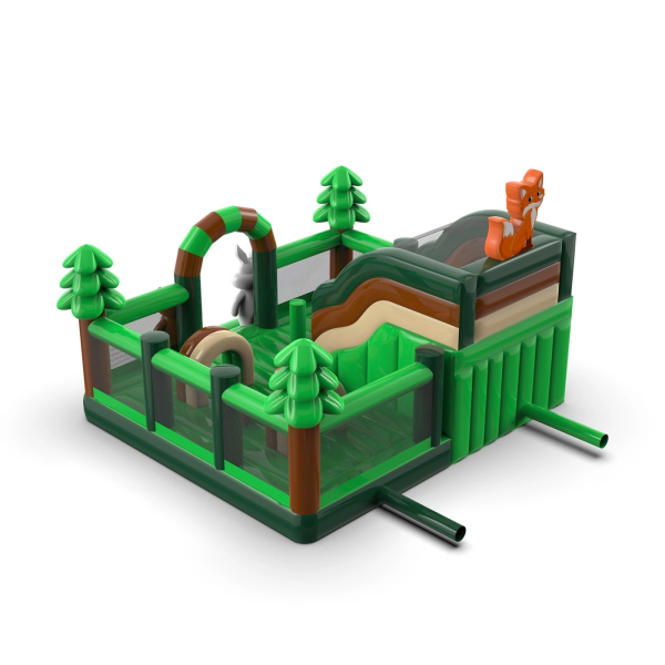 Μια μοναδική φουσκωτή παιδική χαρά, ειδικά δημιουργημένη με θέμα το φυσικό δάσος! Ο πρωτότυπος σχεδιασμός μας, κορεσμένος με τα φυσικά χρώματα της χλωρίδας και της πανίδας, δημιουργεί μια μοναδική ατμόσφαιρα που εναρμονίζεται με τη γύρω φύση.