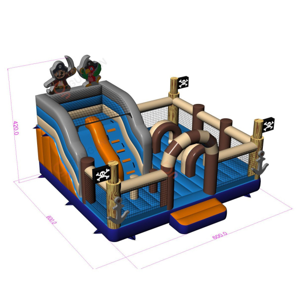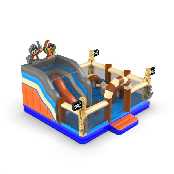 Η φουσκωτή παιδική χαρά με πειρατικό θέμα είναι μια ναυτική αποστολή για να βρείτε έναν ανεξερεύνητο θησαυρό! Η ασφαλής κατασκευή της φουσκωτής παιδικής χαράς με πειρατικό θέμα θα εξασφαλίσει διασκέδαση χωρίς ατυχήματα για ώρες. Ο καπετάνιος και ο πιστός παπαγάλος σύντροφός του θα σας συνοδεύουν σε όλη αυτή την περιπέτεια. Άγιο περιπέτειας, μαζέψτε τους φίλους σας και πηδήξτε στη βάση της ισχυρής και ανθεκτικής φουσκωτής παιδικής χαράς σε πειρατικό θέμα.