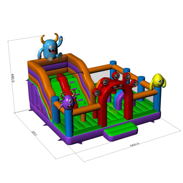 Η διογκώσιμη παιδική χαρά σε ένα θέμα τεράτων είναι καταπληκτική διασκέδαση για όλους που παίζουν σε αυτό το διογκώσιμο! Η ασφαλής κατασκευή της φουσκωτής παιδικής χαράς με θέμα τέρας θα εξασφαλίσει διασκέδαση χωρίς ατυχήματα για ώρες. Αυτή η φουσκωτή παιδική χαρά σε υψηλό χρωματικό κορεσμό προσελκύει την προσοχή σχεδόν όλων από απόσταση. Γνωρίστε όλα τα χαμογελαστά τέρατα και συμμετέχετε στη διασκέδαση σε αυτή τη φουσκωτή παιδική χαρά.