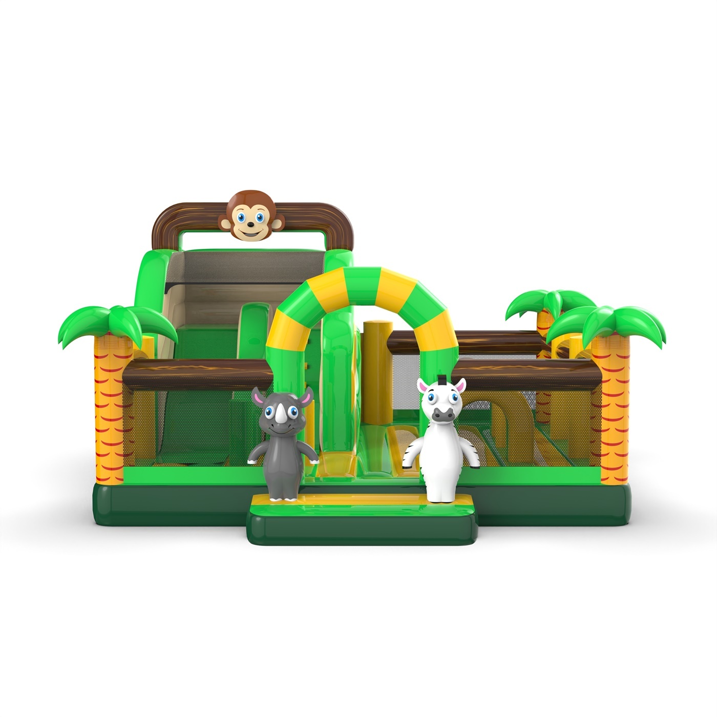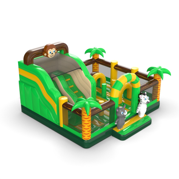 Η φουσκωτή παιδική χαρά με θέμα την άγρια ζούγκλα είναι μια εξαιρετική περιπέτεια στο άγνωστο για κάθε ταξιδιώτη! Η ασφαλής κατασκευή της φουσκωτής παιδικής χαράς με θέμα την άγρια ζούγκλα θα εξασφαλίσει διασκέδαση χωρίς ατυχήματα για ώρες. Τα τρισδιάστατα στοιχεία και η προσοχή στη λεπτομέρεια αυτής της φουσκωτής παιδικής χαράς θα συγκεντρώσουν τα βλέμματα σχεδόν όλων κατά τη διάρκεια του παιχνιδιού σε εξωτερικούς χώρους. Ανεβείτε στο φουσκωτό γεμάτο πράσινα στοιχεία. Βουτήξτε στο ψηλό γρασίδι και πηδήξτε προς την περιπέτεια!