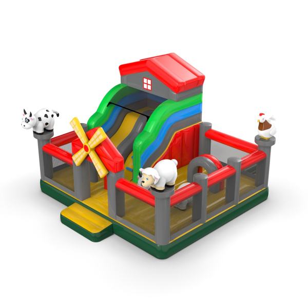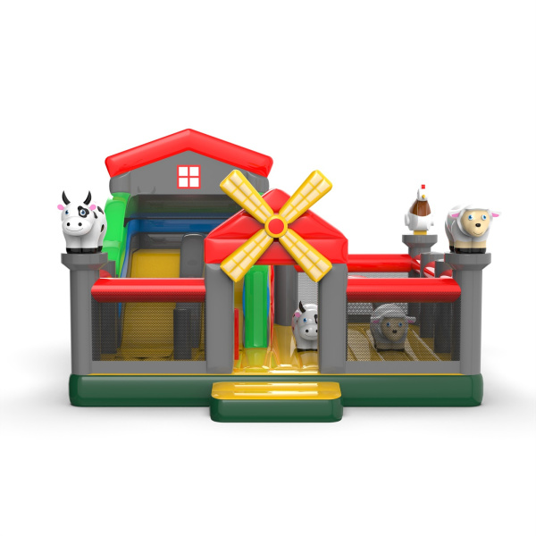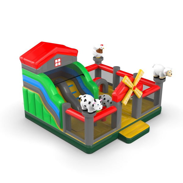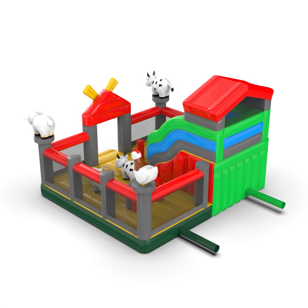 Η φουσκωτή παιδική χαρά με θέμα το αγρόκτημα είναι πολύ διασκεδαστική για κάθε παιδί. Η ασφαλής κατασκευή της φουσκωτής παιδικής χαράς με θέμα το αγρόκτημα θα εξασφαλίσει διασκέδαση χωρίς ατυχήματα για ώρες. Δείτε ποια ζώα εκτρέφονται στη φάρμα. Πετάξτε έξω για φρέσκο γάλα και άλλες λιχουδιές. Η τέλεια αναπαραγωγή του μεγάλου αχυρώνα ενισχύει περαιτέρω την εικόνα αυτού του φουσκωτού, το οποίο έχουμε σχεδιάσει για ώρες διασκέδασης από μια ομάδα παιδιών.