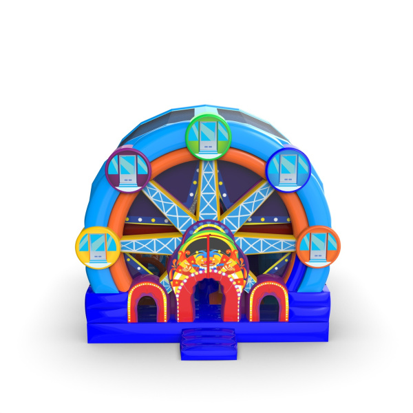 Η φουσκωτή ρόδα λούνα παρκ είναι μια συναρπαστική ατραξιόν που μεταφέρει τα παιδιά στον μαγικό κόσμο ενός λούνα παρκ! Αυτή η πολύχρωμη κατασκευή προσφέρει ώρες διασκέδασης και απόλαυσης, προσφέροντας στα παιδιά την ευκαιρία να πηδούν, να σκαρφαλώνουν και να γλιστρούν. Ιδανικό για κάθε είδους εκδηλώσεις, από πάρτι γενεθλίων μέχρι οικογενειακές γιορτές, αυτό το φουσκωτό θα εμπλέξει τα παιδιά σε σωματική δραστηριότητα και θα δημιουργήσει αξέχαστες αναμνήσεις, ενώ η στιβαρή κατασκευή του εγγυάται την ασφάλεια κατά τη διάρκεια του παιχνιδιού!