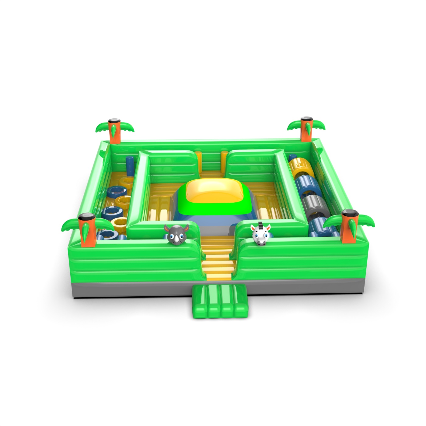 Η φουσκωτή παιδική χαρά "Ζούγκλα" θα μεταφέρει τα παιδιά στον συναρπαστικό κόσμο της άγριας ζωής. Ο πλούτος των χρωμάτων και των αξιοθέατων ενθαρρύνει το ενεργό παιχνίδι και την ανάπτυξη της φαντασίας. Ιδανική για κάθε περίσταση, προσφέρει ώρες ψυχαγωγίας σε εξωτερικούς χώρους.