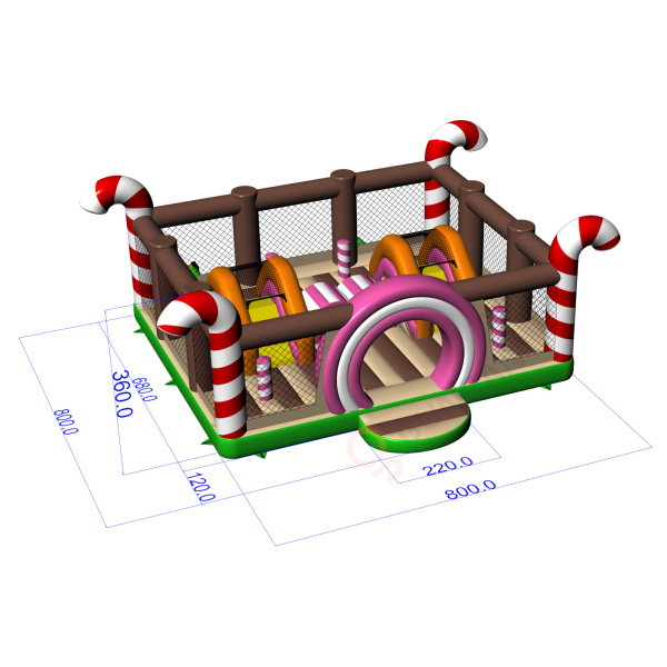Το Παιδική χαρά με θέμα τα γλυκά απευθύνεται κυρίως σε παιδιά που αναζητούν περιπέτεια κατά τη διάρκεια του παιχνιδιού με φίλους και συνομηλίκους. Η φουσκωτή παιδική χαρά είναι περιφραγμένη και μαλακή, επομένως απολύτως ασφαλής κατά τη χρήση. Συνήθως περιλαμβάνει μία μεγάλη και μία μικρή τσουλήθρα, γι’ αυτό και παιδιά διαφόρων ηλικιών θα περάσουν υπέροχα παίζοντας. Το Παιδική χαρά με θέμα τα γλυκά είναι ιδανικό για οικογενειακά πικνίκ, εταιρικές και ομαδικές εκδηλώσεις, καθώς και για άλλου τύπου event – τόσο σε εξωτερικό χώρο όσο και σε αίθουσες. Οι φουσκωτές παιδικές χαρές αποτελούν εξαιρετική εναλλακτική λύση έναντι μεγαλύτερων και πιο απαιτητικών φουσκωτών. Συνιστούμε ιδιαίτερα αυτήν την ατραξιόν για την έναρξη μιας επιχείρησης.