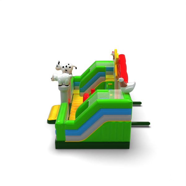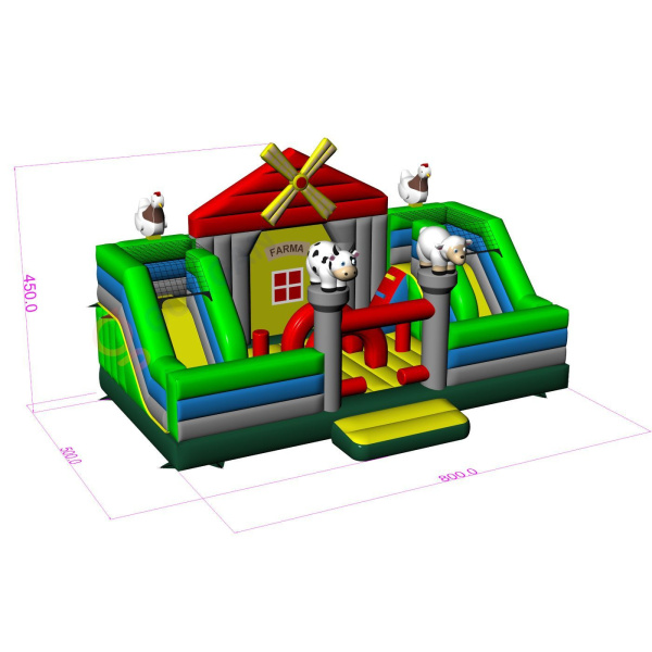 Η φουσκωτή παιδική χαρά "Farm" θα μεταφέρει τα παιδιά σε έναν γοητευτικό αγροτικό κόσμο γεμάτο ζώα και περιπέτειες. Τα πολύχρωμα στοιχεία της φάρμας ενθαρρύνουν το ενεργό παιχνίδι και τη φαντασία. Μια ιδανική ατραξιόν για υπαίθριες εκδηλώσεις που θα προσφέρει στα παιδιά πολλή διασκέδαση.
