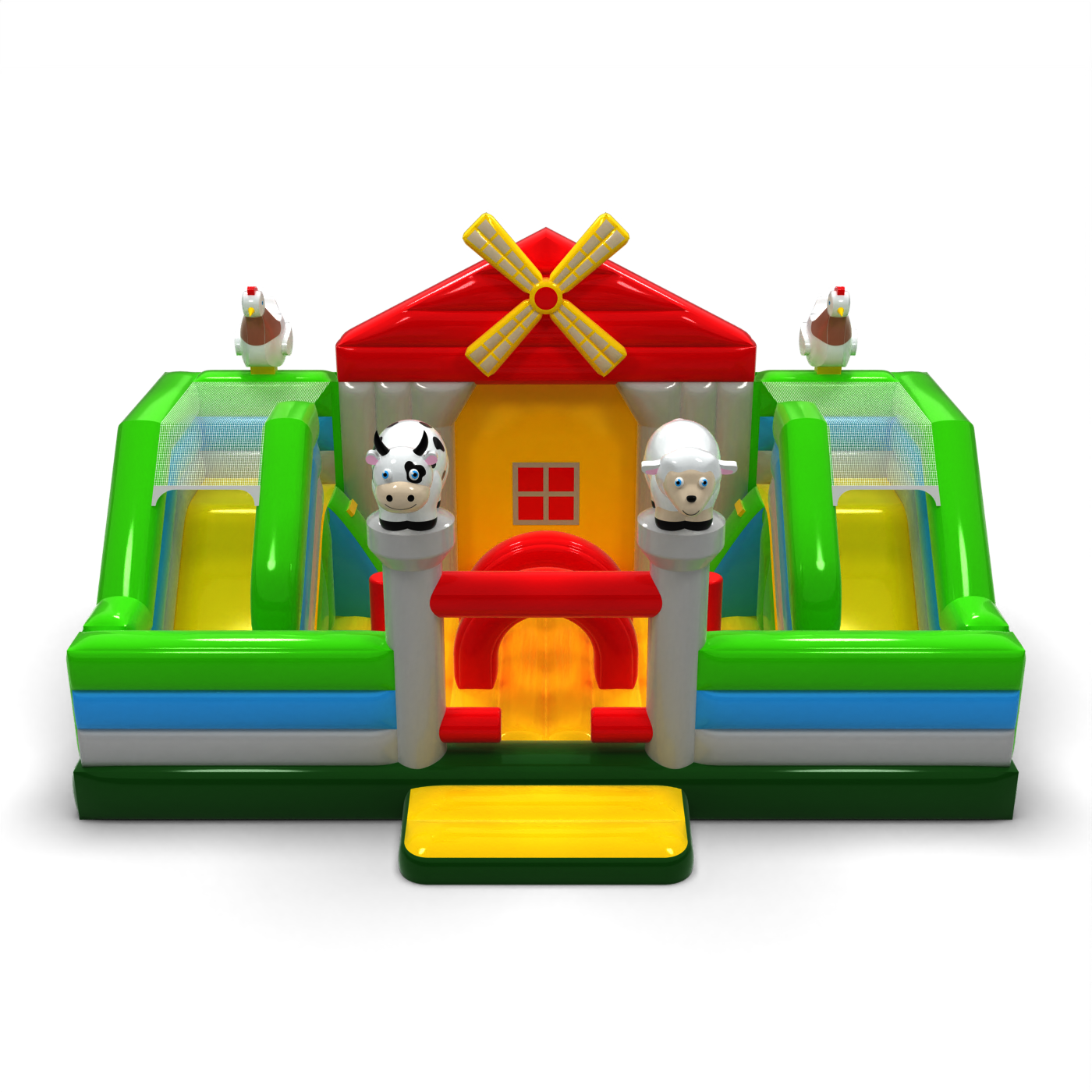 Το Φουσκωτή παιδική χαρά - αγρόκτημα απευθύνεται κυρίως σε παιδιά που αναζητούν περιπέτεια κατά τη διάρκεια του παιχνιδιού με φίλους και συνομηλίκους. Η φουσκωτή παιδική χαρά είναι περιφραγμένη και μαλακή, επομένως απολύτως ασφαλής κατά τη χρήση. Συνήθως περιλαμβάνει μία μεγάλη και μία μικρή τσουλήθρα, γι’ αυτό και παιδιά διαφόρων ηλικιών θα περάσουν υπέροχα παίζοντας. Το Φουσκωτή παιδική χαρά - αγρόκτημα είναι ιδανικό για οικογενειακά πικνίκ, εταιρικές και ομαδικές εκδηλώσεις, καθώς και για άλλου τύπου event – τόσο σε εξωτερικό χώρο όσο και σε αίθουσες. Οι φουσκωτές παιδικές χαρές αποτελούν εξαιρετική εναλλακτική λύση έναντι μεγαλύτερων και πιο απαιτητικών φουσκωτών. Συνιστούμε ιδιαίτερα αυτήν την ατραξιόν για την έναρξη μιας επιχείρησης.