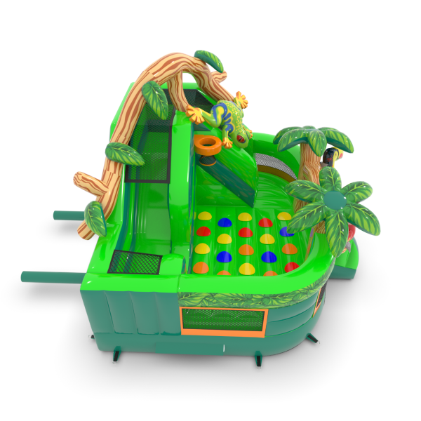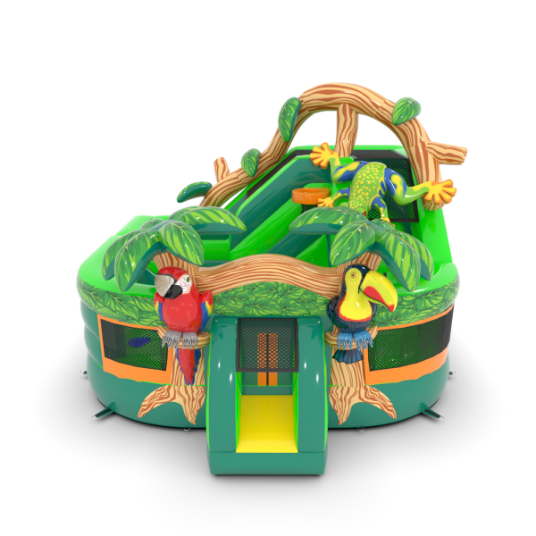 Ανακαλύψτε τα μυστικά μιας άγριας περιπέτειας με ένα φουσκωτό κάστρο με θέμα τη ζούγκλα! Αυτή η εκπληκτική ατραξιόν μεταφέρει τα παιδιά στην καρδιά ενός τροπικού παραδεισένιου τοπίου, όπου μπορούν να εξερευνήσουν, να πηδήξουν και να απολαύσουν ατελείωτη διασκέδαση. Είναι ο τέλειος τρόπος για να παρασύρετε τα παιδιά σε έναν κόσμο φαντασίας και σωματικής δραστηριότητας, ανοίγοντας την πόρτα σε απεριόριστες περιπέτειες.