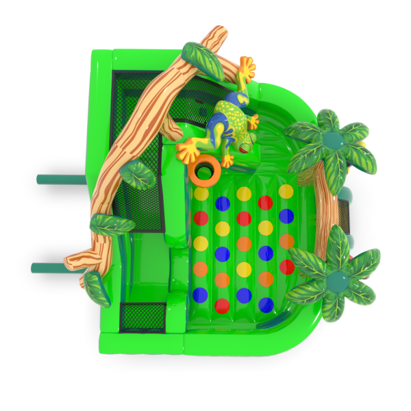 Το Φουσκωτή παιδική χαρά "βάτραχος" σε θέμα ζούγκλας απευθύνεται κυρίως σε παιδιά που αναζητούν περιπέτεια κατά τη διάρκεια του παιχνιδιού με φίλους και συνομηλίκους. Η φουσκωτή παιδική χαρά είναι περιφραγμένη και μαλακή, επομένως απολύτως ασφαλής κατά τη χρήση. Συνήθως περιλαμβάνει μία μεγάλη και μία μικρή τσουλήθρα, γι’ αυτό και παιδιά διαφόρων ηλικιών θα περάσουν υπέροχα παίζοντας. Το Φουσκωτή παιδική χαρά "βάτραχος" σε θέμα ζούγκλας είναι ιδανικό για οικογενειακά πικνίκ, εταιρικές και ομαδικές εκδηλώσεις, καθώς και για άλλου τύπου event – τόσο σε εξωτερικό χώρο όσο και σε αίθουσες. Οι φουσκωτές παιδικές χαρές αποτελούν εξαιρετική εναλλακτική λύση έναντι μεγαλύτερων και πιο απαιτητικών φουσκωτών. Συνιστούμε ιδιαίτερα αυτήν την ατραξιόν για την έναρξη μιας επιχείρησης.