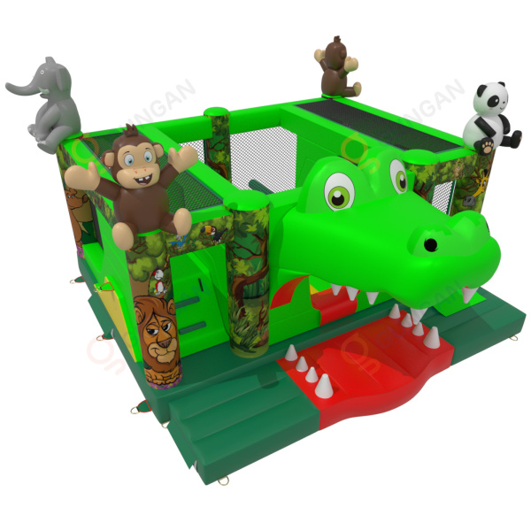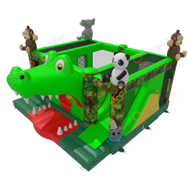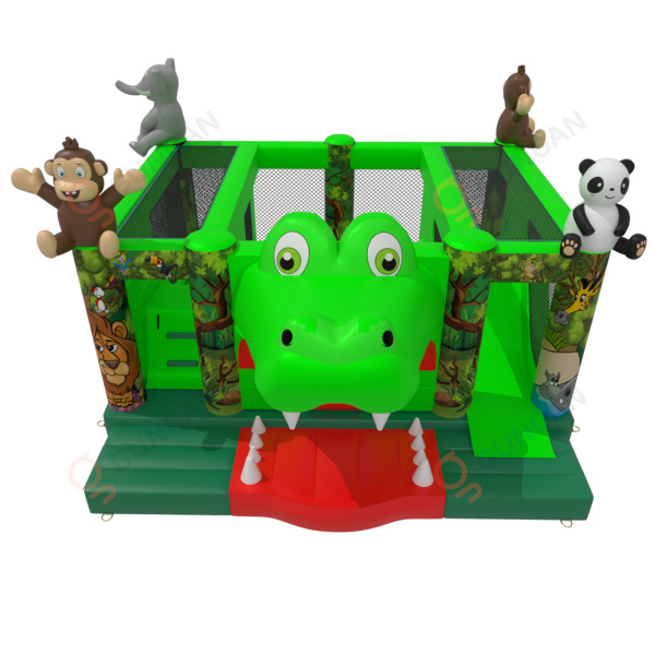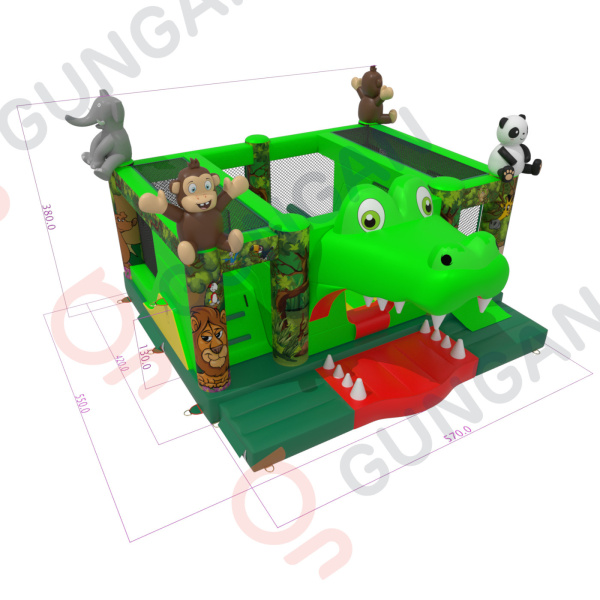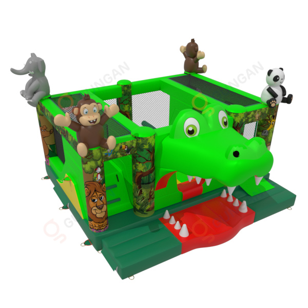 Το Φουσκωτή παιδική χαρά "κροκόδειλος" σε θέμα ζούγκλας απευθύνεται κυρίως σε παιδιά που αναζητούν περιπέτεια κατά τη διάρκεια του παιχνιδιού με φίλους και συνομηλίκους. Η φουσκωτή παιδική χαρά είναι περιφραγμένη και μαλακή, επομένως απολύτως ασφαλής κατά τη χρήση. Συνήθως περιλαμβάνει μία μεγάλη και μία μικρή τσουλήθρα, γι’ αυτό και παιδιά διαφόρων ηλικιών θα περάσουν υπέροχα παίζοντας. Το Φουσκωτή παιδική χαρά "κροκόδειλος" σε θέμα ζούγκλας είναι ιδανικό για οικογενειακά πικνίκ, εταιρικές και ομαδικές εκδηλώσεις, καθώς και για άλλου τύπου event – τόσο σε εξωτερικό χώρο όσο και σε αίθουσες. Οι φουσκωτές παιδικές χαρές αποτελούν εξαιρετική εναλλακτική λύση έναντι μεγαλύτερων και πιο απαιτητικών φουσκωτών. Συνιστούμε ιδιαίτερα αυτήν την ατραξιόν για την έναρξη μιας επιχείρησης.