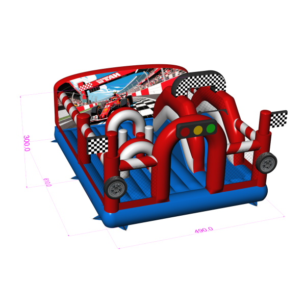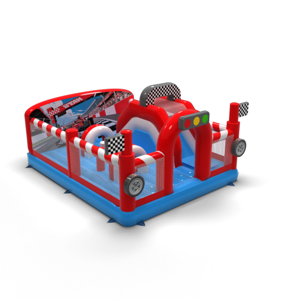 Η φουσκωτή παιδική χαρά 6x5 με θέμα το αυτοκίνητο είναι μια δυναμική ατραξιόν για τις παιδικές ζώνες σε εκδηλώσεις, φεστιβάλ και εταιρικά πικνίκ, προσελκύοντας την προσοχή με το αγορίστικο σχεδιασμό και την αθλητική ατμόσφαιρα. Το θέμα των αγώνων με σημαίες, σήμανση και διακοσμητικά σε στυλ πίστας ράλι κάνει την προσφορά να ξεχωρίζει και προσθέτει ενέργεια στην εκδήλωση. Ο σχεδιασμός των εμποδίων και των τσουλήθρων επιτρέπει την ομαλή περιστροφή των παιδιών και την ομαλή διαχείριση της κυκλοφορίας στην περιοχή εμψύχωσης. Επιλέξτε μια ατραξιόν που προσελκύει αποτελεσματικά την προσοχή και προσθέτει αξία στην προσφορά σας.