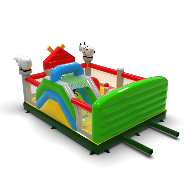 Το Φουσκωτή παιδική χαρά 6x5 σε θέμα φάρμας απευθύνεται κυρίως σε παιδιά που αναζητούν περιπέτεια κατά τη διάρκεια του παιχνιδιού με φίλους και συνομηλίκους. Η φουσκωτή παιδική χαρά είναι περιφραγμένη και μαλακή, επομένως απολύτως ασφαλής κατά τη χρήση. Συνήθως περιλαμβάνει μία μεγάλη και μία μικρή τσουλήθρα, γι’ αυτό και παιδιά διαφόρων ηλικιών θα περάσουν υπέροχα παίζοντας. Το Φουσκωτή παιδική χαρά 6x5 σε θέμα φάρμας είναι ιδανικό για οικογενειακά πικνίκ, εταιρικές και ομαδικές εκδηλώσεις, καθώς και για άλλου τύπου event – τόσο σε εξωτερικό χώρο όσο και σε αίθουσες. Οι φουσκωτές παιδικές χαρές αποτελούν εξαιρετική εναλλακτική λύση έναντι μεγαλύτερων και πιο απαιτητικών φουσκωτών. Συνιστούμε ιδιαίτερα αυτήν την ατραξιόν για την έναρξη μιας επιχείρησης.