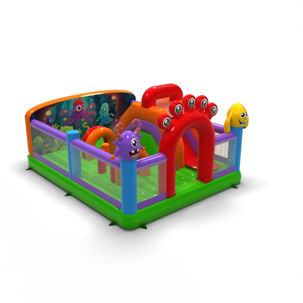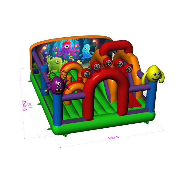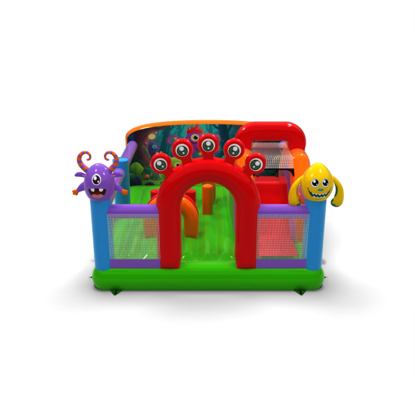 Το Φουσκωτή παιδική χαρά 6x5 σε θέμα τέρας απευθύνεται κυρίως σε παιδιά που αναζητούν περιπέτεια κατά τη διάρκεια του παιχνιδιού με φίλους και συνομηλίκους. Η φουσκωτή παιδική χαρά είναι περιφραγμένη και μαλακή, επομένως απολύτως ασφαλής κατά τη χρήση. Συνήθως περιλαμβάνει μία μεγάλη και μία μικρή τσουλήθρα, γι’ αυτό και παιδιά διαφόρων ηλικιών θα περάσουν υπέροχα παίζοντας. Το Φουσκωτή παιδική χαρά 6x5 σε θέμα τέρας είναι ιδανικό για οικογενειακά πικνίκ, εταιρικές και ομαδικές εκδηλώσεις, καθώς και για άλλου τύπου event – τόσο σε εξωτερικό χώρο όσο και σε αίθουσες. Οι φουσκωτές παιδικές χαρές αποτελούν εξαιρετική εναλλακτική λύση έναντι μεγαλύτερων και πιο απαιτητικών φουσκωτών. Συνιστούμε ιδιαίτερα αυτήν την ατραξιόν για την έναρξη μιας επιχείρησης.