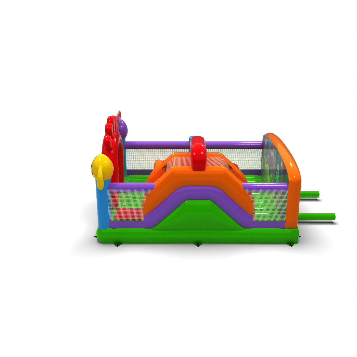 Η τέλεια ατραξιόν για εκδηλώσεις με χιούμορ - το θέμα των αστείων τεράτων είναι ιδανικό για τα παιδιά που αγαπούν τις πρωτότυπες, πρωτότυπες διακοσμήσεις. Τα εντυπωσιακά χρώματα, οι αστείοι χαρακτήρες και η έξυπνη διάταξη των εμποδίων κάνουν τα παιδιά να ανυπομονούν να επιστρέψουν για να παίξουν. Το μοντέλο θα λειτουργήσει καλά σε κάθε χώρο - από σχολικές εκδηλώσεις μέχρι μεμονωμένες ενοικιάσεις και μεγάλα φεστιβάλ. Χάρη στο χαμηλό ύψος και τη συμπαγή μορφή της, η παιδική χαρά είναι εύκολη στο χειρισμό και τη μεταφορά. Ενισχύστε την προσφορά σας με μια ατραξιόν που κάνει τους ανθρώπους να χαμογελούν και μένει αξέχαστη!
