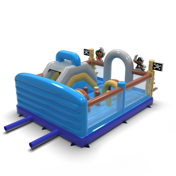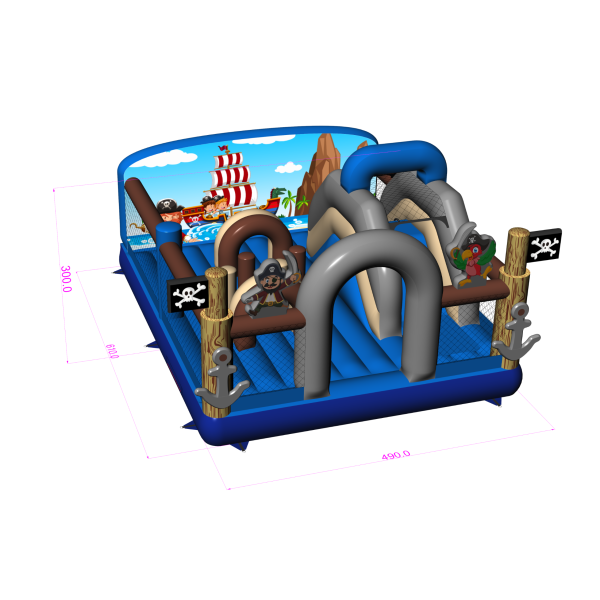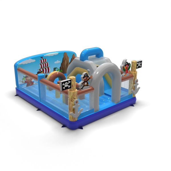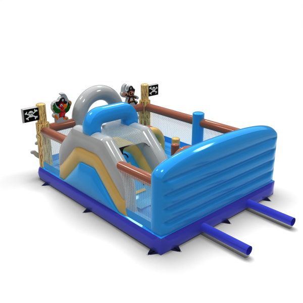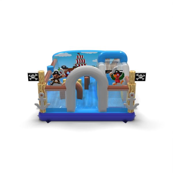 Ένας παιδότοπος περιπέτειας με θέμα τους πειρατές είναι ένας σίγουρος τρόπος για να προσελκύσετε παιδιά προσχολικής και πρώτης σχολικής ηλικίας. Τα πολύχρωμα γραφικά, οι σημαίες κρανίου και οι πειρατικοί χαρακτήρες δημιουργούν ένα περιβάλλον που διεγείρει τη φαντασία και ενθαρρύνει την εξερεύνηση. Η έξυπνη διάταξη της πίστας και της τσουλήθρας επιτρέπει έντονη διασκέδαση σε ασφαλή μορφή. Μια εξαιρετική επιλογή για εταιρείες εκδηλώσεων και εταιρείες ενοικίασης που θέλουν να διαφοροποιήσουν την προσφορά τους με μια θεματική ατραξιόν. Κάντε τη ζώνη σας να ξεχωρίζει και προσκαλέστε τους μικρούς εξερευνητές σε έναν κόσμο γεμάτο περιπέτεια!