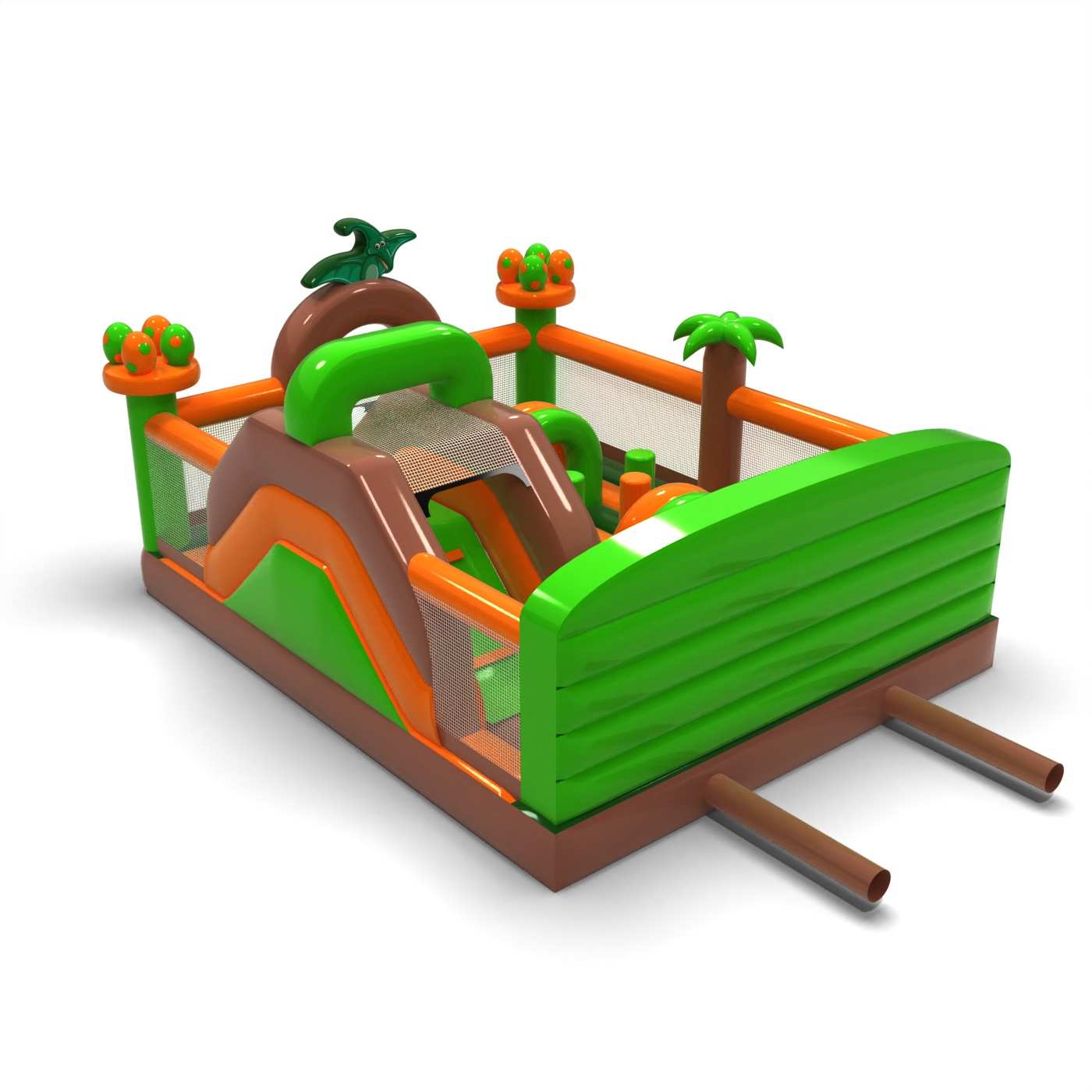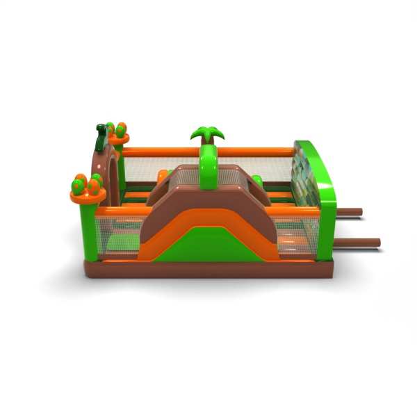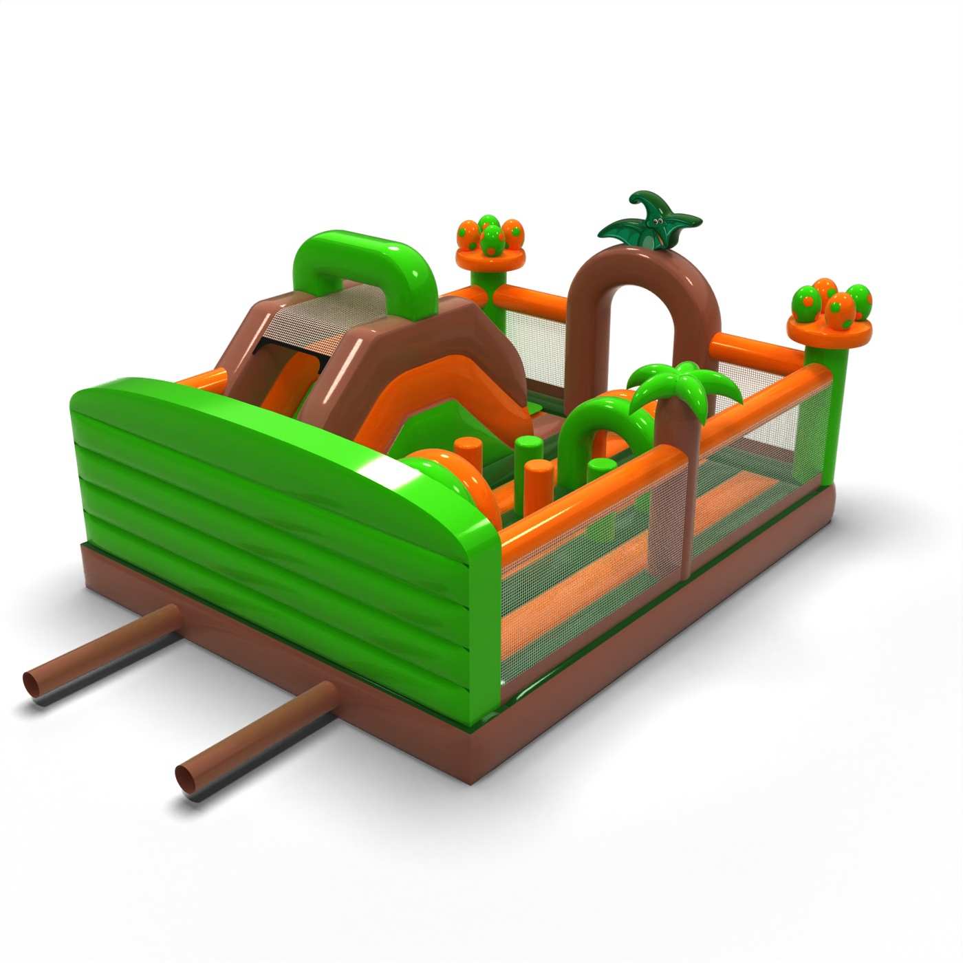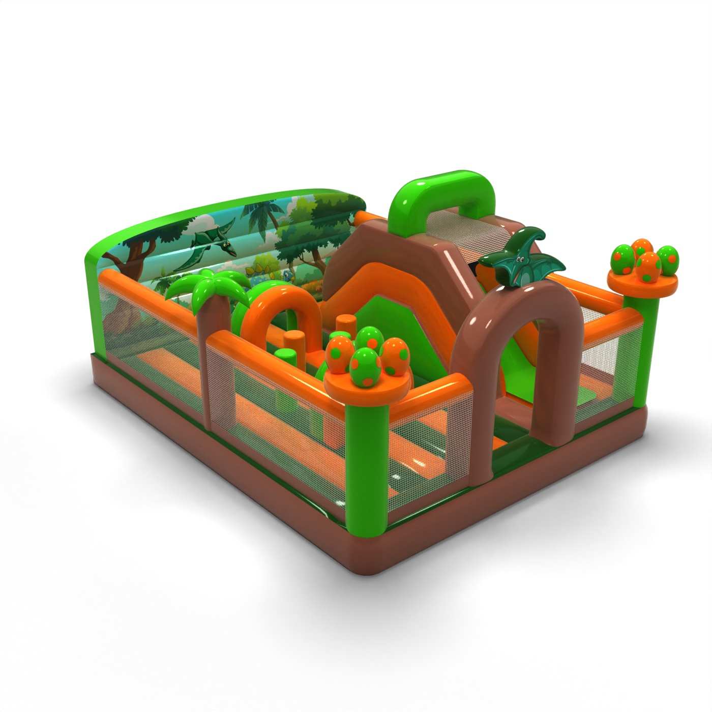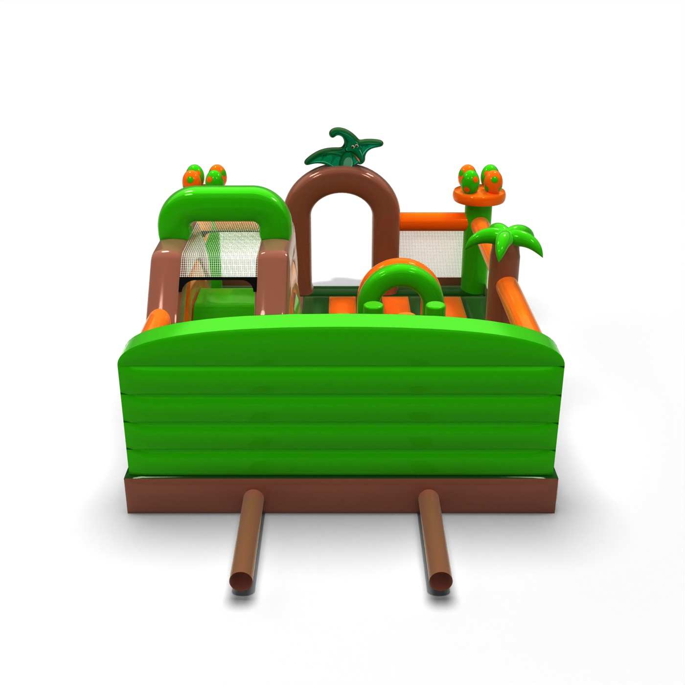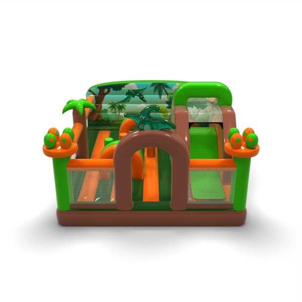 Η ιουρασική ατμόσφαιρα και η συμπαγής μορφή δημιουργούν έναν ελκυστικό χώρο παιχνιδιού που προσελκύει γρήγορα τα παιδιά και ενθαρρύνει τη δραστηριότητα. Το εσωτερικό της παιδικής χαράς προσφέρει ποικιλία στοιχείων για άλματα και κίνηση, ώστε το παιχνίδι να παραμένει δυναμικό και συναρπαστικό. Ο σχεδιασμός των δεινοσαύρων δημιουργεί μια συνεκτική, περιπετειώδη αφήγηση και ταιριάζει καλά με τις θεματικές ζώνες εμψύχωσης. Πρόκειται για μια πρακτική λύση για εταιρείες ενοικίασης που αναζητούν μια ατραξιόν με ευρεία απήχηση και καλό κύκλο εργασιών των συμμετεχόντων. Η παιδική χαρά θα λειτουργήσει καλά σε φεστιβάλ, οικογενειακά πικνίκ και υπαίθριες εκδηλώσεις όπου απαιτείται μια συμπαγής αλλά σαφώς ορατή ατραξιόν.