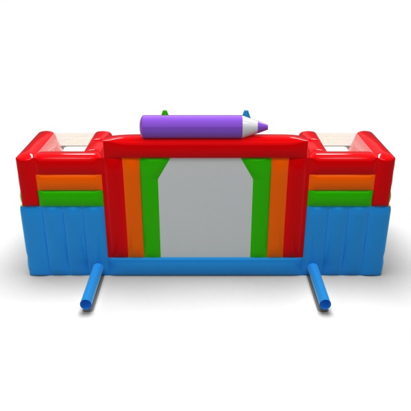 Ο εκτεταμένος σχεδιασμός σε στυλ μαυροπίνακα δημιουργεί μια σαφώς οριοθετημένη, δημιουργική ζώνη παιχνιδιού. Τα διάφορα στοιχεία δραστηριότητας ενθαρρύνουν τα παιδιά να απολαμβάνουν τα αξιοθέατα για μεγαλύτερο χρονικό διάστημα και να κινούνται ελεύθερα στο εσωτερικό τους. Τα παστέλ χρώματα και οι χαρακτηριστικές μορφές δημιουργούν θετικούς συνειρμούς με τη ζωγραφική και το δημιουργικό παιχνίδι. Απευθύνεται σε διοργανωτές που θέλουν να προσφέρουν στα παιδιά έναν μεγάλο, πολυλειτουργικό χώρο εμψύχωσης. Η ατραξιόν θα είναι ιδανική για μεγάλα πικνίκ, φεστιβάλ και οικογενειακές υπαίθριες εκδηλώσεις.