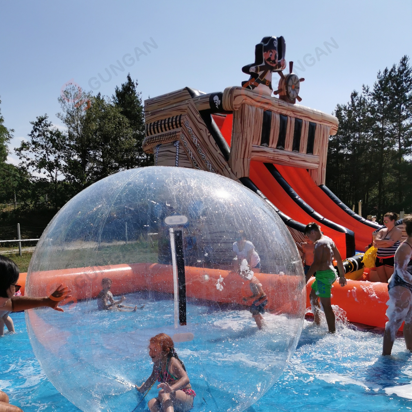 Το Φουσκωτή πισίνα με μπάλα νερού 10 x 10 m είναι ένα αξιοθέατο αφιερωμένο στους λάτρεις των υδάτινων περιπετειών και της διασκέδασης κάθε ηλικίας. Οι φουσκωτές υδάτινες πισίνες αποτελούν αναπόσπαστο μέρος άλλων εξίσου ελκυστικών στοιχείων του φουσκωτού υδάτινου πάρκου, όπως οι υδάτινοι κύλινδροι και οι μπάλες νερού. Η υδάτινη ψυχαγωγία με τη μορφή πισίνας επιτρέπει στους συμμετέχοντες μιας εταιρικής εκδήλωσης, ενός φεστιβάλ ή μιας υπαίθριας συγκέντρωσης να δροσιστούν. Τα φουσκωτά με νερό δημιουργήθηκαν με στόχο να εμπλουτίσουν τις συναντήσεις παιδιών και εφήβων. Η φουσκωτή υδάτινη πισίνα μπορεί να αποτελέσει απόλυτο χιτ για σχεδόν κάθε άτομο που λατρεύει να περνά χρόνο στην ύπαιθρο, τα μακρά καλοκαιρινά απογεύματα και τα ζεστά βράδια.