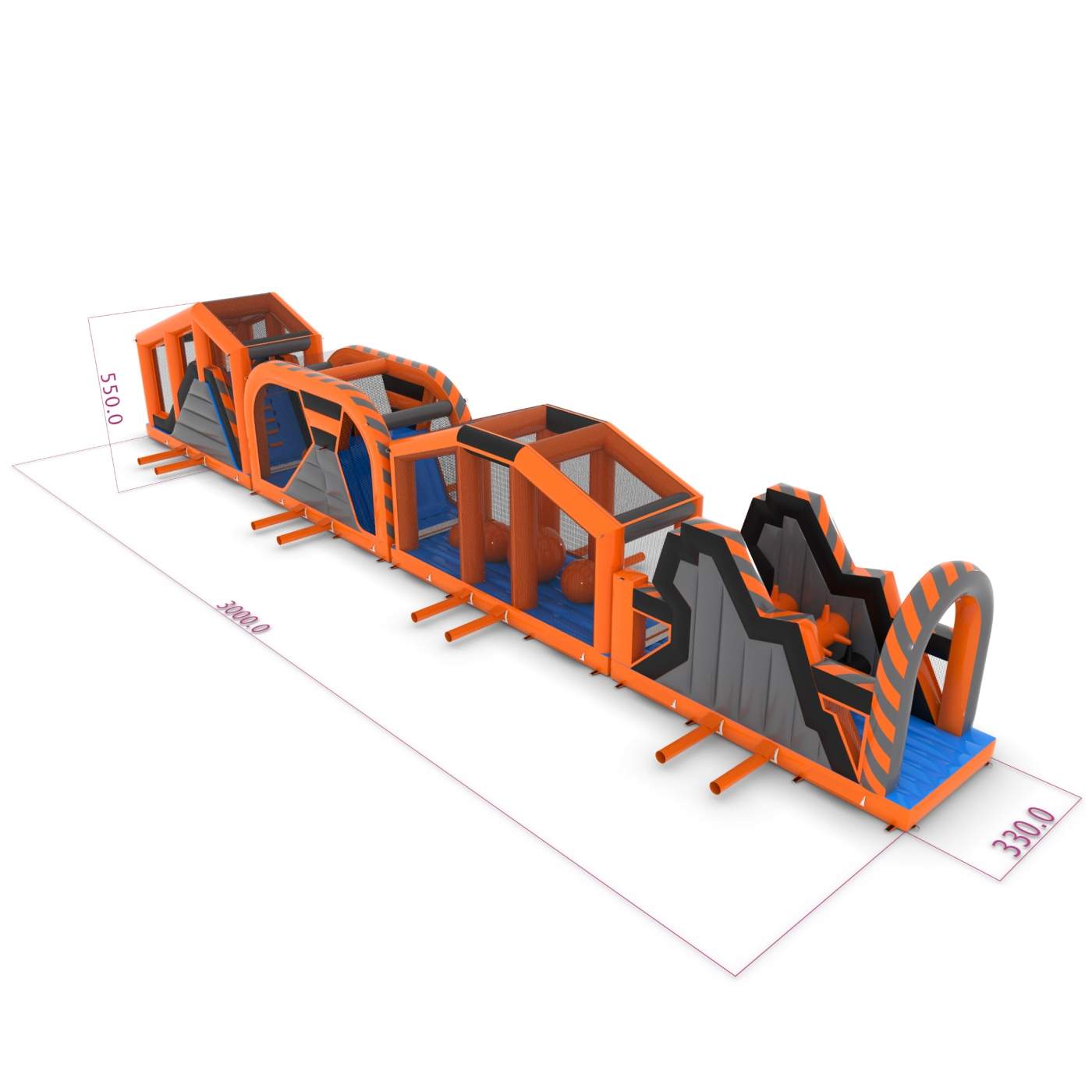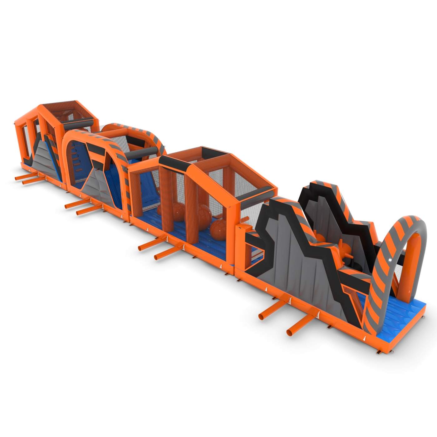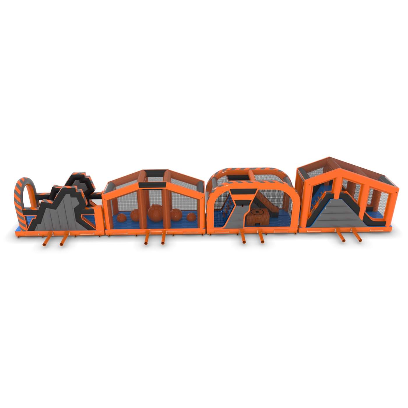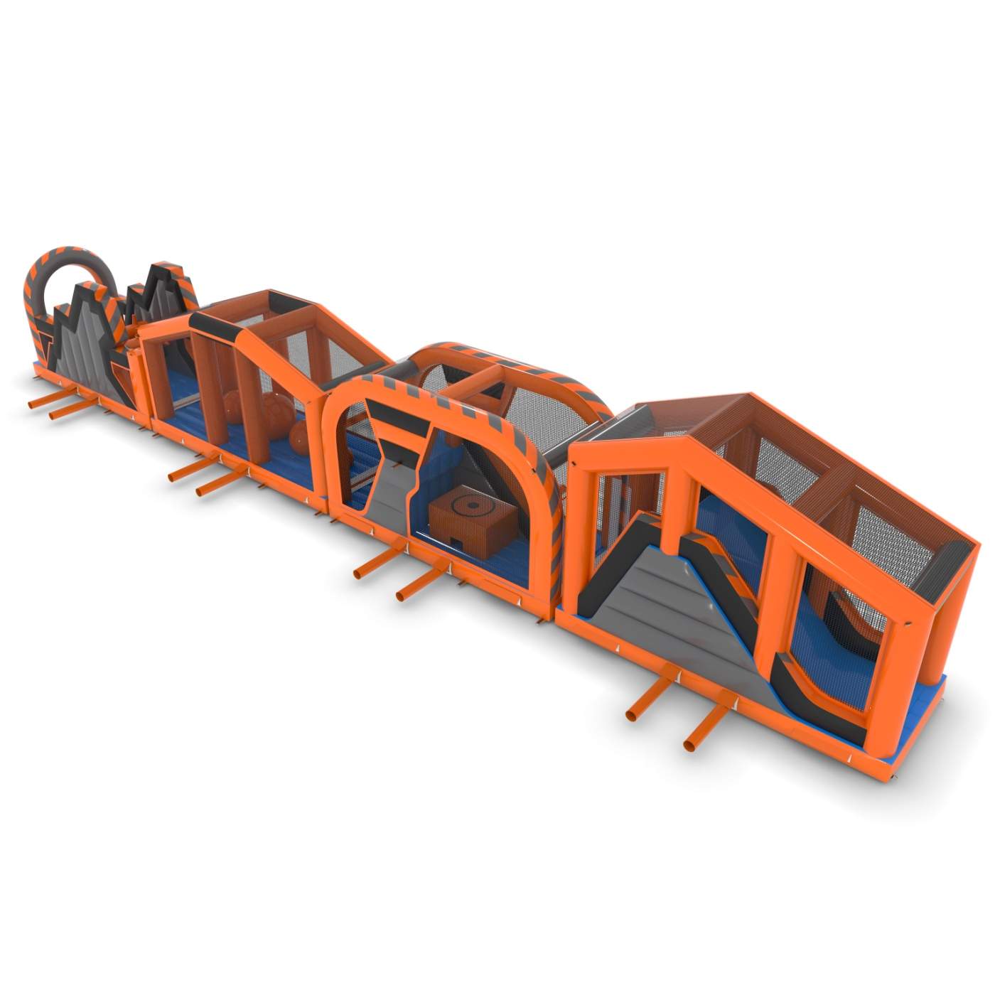 Μια φουσκωτή διαδρομή εμποδίων με κλασικό σχεδιασμό είναι μια πρόκληση που θα προσφέρει άφθονο ενθουσιασμό και διασκέδαση! Η δομή πολλαπλών στοιχείων με σήραγγες, εμπόδια και αναρριχητές θα λειτουργήσει καλά για μεγαλύτερες εκδηλώσεις και εορτασμούς. Είναι η ιδανική ατραξιόν για παιδιά και νέους που αγαπούν την ενεργητική ψυχαγωγία.