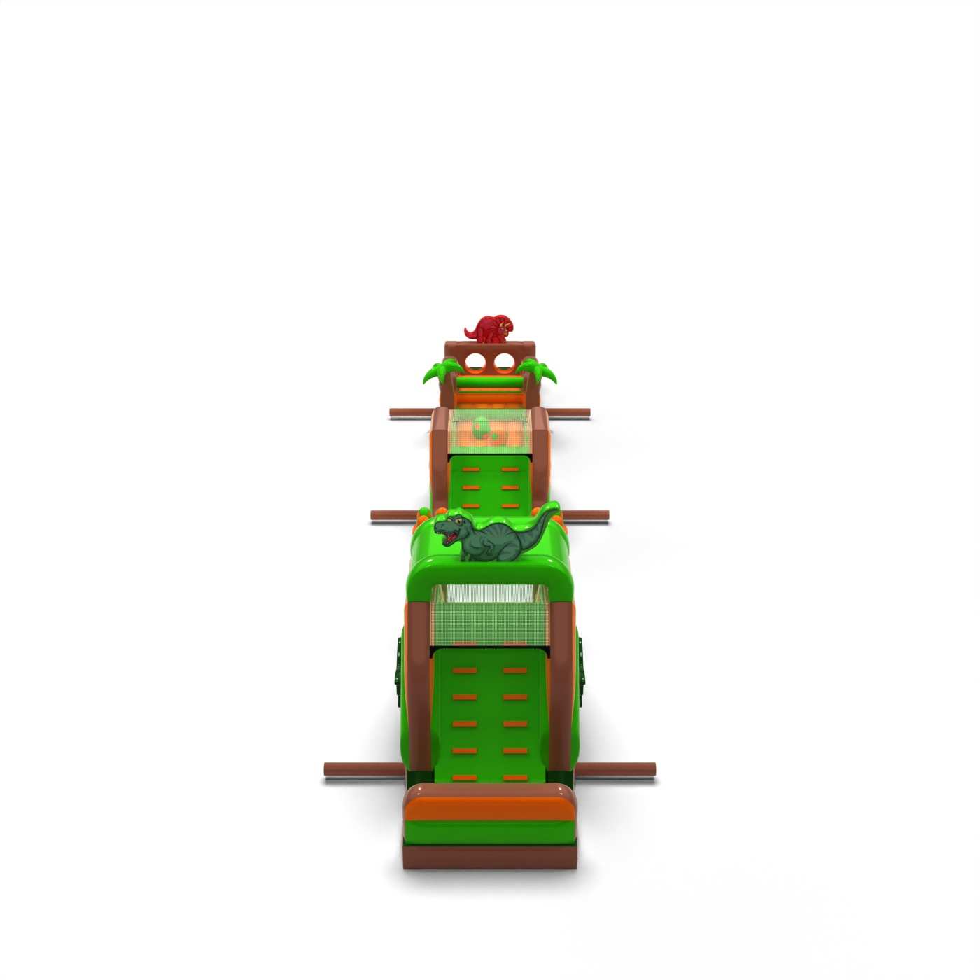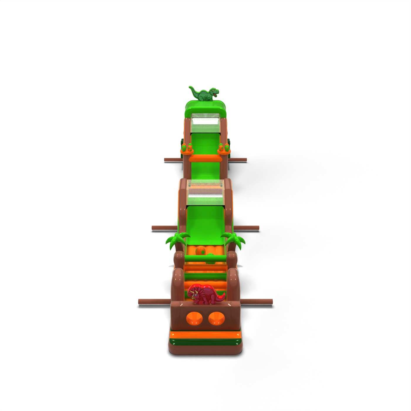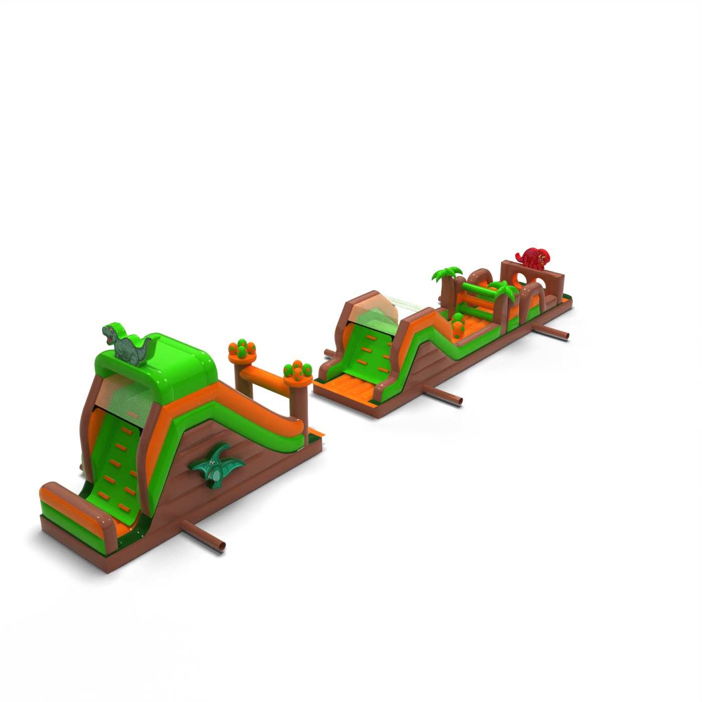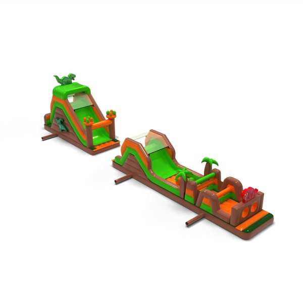 Η ιουρασική ατμόσφαιρα και το εντυπωσιακό μήκος της διαδρομής κάνουν αυτό το αξιοθέατο αμέσως εντυπωσιακό και δημιουργούν έντονα συναισθήματα στους συμμετέχοντες. Η εκτεταμένη διαδρομή εμποδίων εξασφαλίζει δυναμική διασκέδαση, καλή χωρητικότητα και ομαλή κίνηση των συμμετεχόντων ακόμη και σε υψηλή πληρότητα της εκδήλωσης. Η δομή είναι σχεδιασμένη για εντατική χρήση προς ενοικίαση, προσφέροντας σταθερότητα και αντοχή στη συχνή χρήση. Χάρη στο καθολικό θέμα των δεινοσαύρων, η πίστα είναι πολύ δημοφιλής στους πελάτες και αποτελεί αποδεδειγμένα μέρος της προσφοράς εκδηλώσεων. Ταιριάζει εξαιρετικά σε ζώνες με θέμα "Jurassic", μεγάλα πικνίκ και ημέρες πόλης, όπου χρειάζεστε μια ατραξιόν που εντυπωσιάζει και εξυπηρετεί πολλούς ανθρώπους σε σύντομο χρονικό διάστημα.
