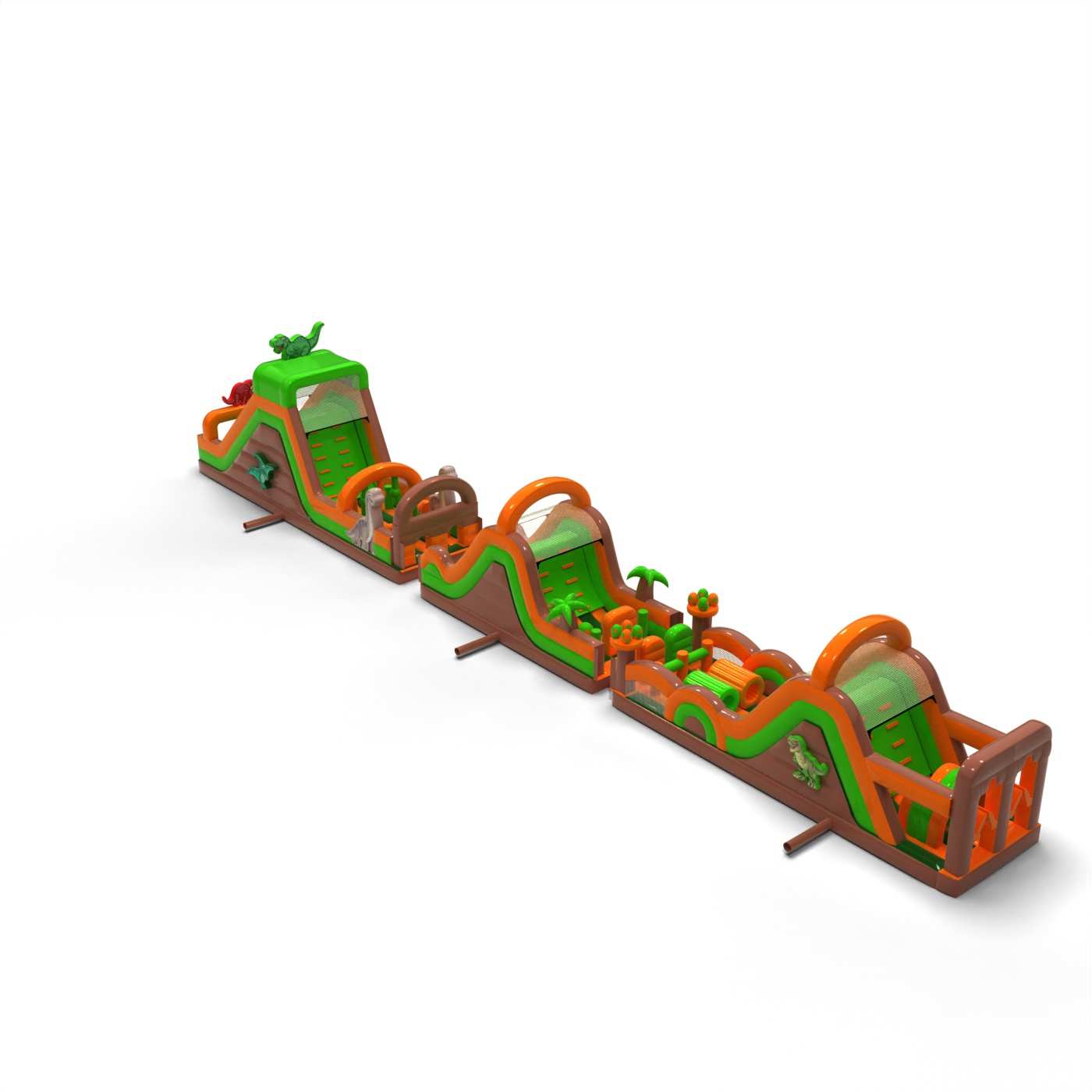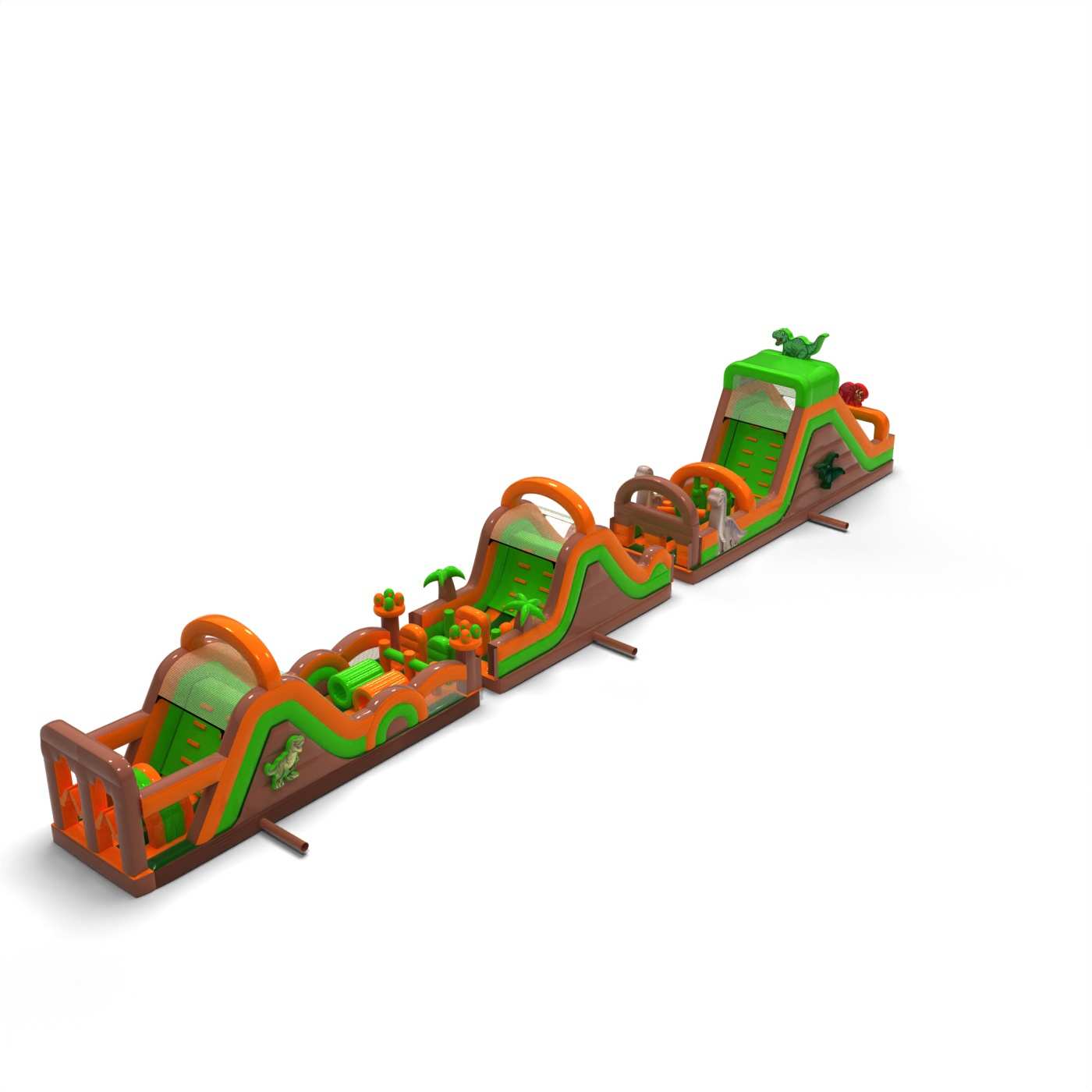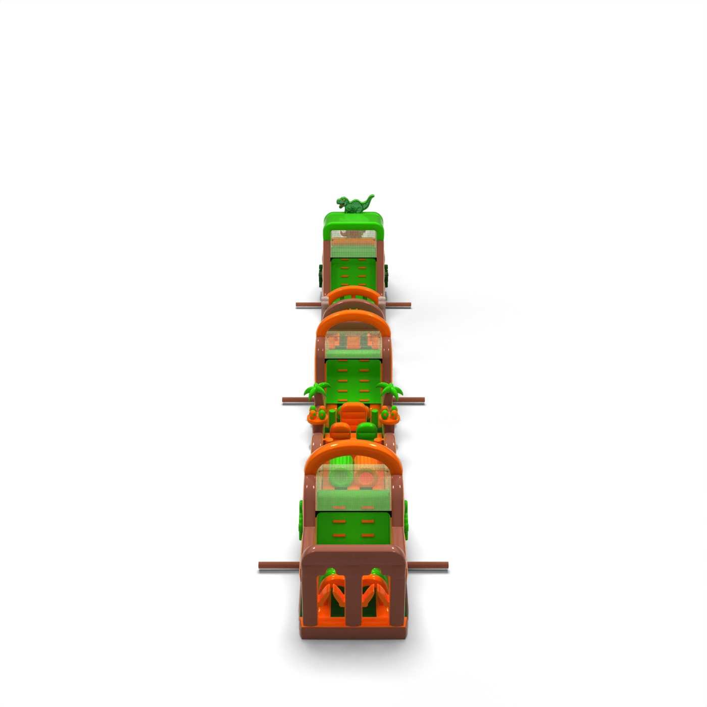 Η μνημειώδης πίστα σε ατμόσφαιρα δεινοσαύρου δημιουργεί μια θεαματική ζώνη διασκέδασης που γίνεται το επίκεντρο κάθε εκδήλωσης. Η πολύ μεγάλη και ποικίλη διαδρομή εμποδίων επιτρέπει έντονο ανταγωνισμό, υψηλή εναλλαγή συμμετεχόντων και μακρά διατήρηση του ενδιαφέροντος για την ατραξιόν. Πρόκειται για μια επαγγελματική κατασκευή προετοιμασμένη για μεγάλες εκδηλώσεις, όπου μετράει η σταθερότητα, η ανθεκτικότητα και η απροβλημάτιστη λειτουργία. Αυτός ο τύπος πίστας είναι ένα ισχυρό επενδυτικό προϊόν, που συχνά επιλέγεται από πελάτες που αναζητούν μεγάλης κλίμακας αξιοθέατα με υψηλές δυνατότητες κέρδους. Θα λειτουργήσει καλύτερα για μαζικές εκδηλώσεις, φεστιβάλ και μεγάλες υπαίθριες παραγωγές, όπου η κλίμακα, το θέαμα και η αξιόπιστη χωρητικότητα καθ' όλη τη διάρκεια της ημέρας είναι σημαντικά.