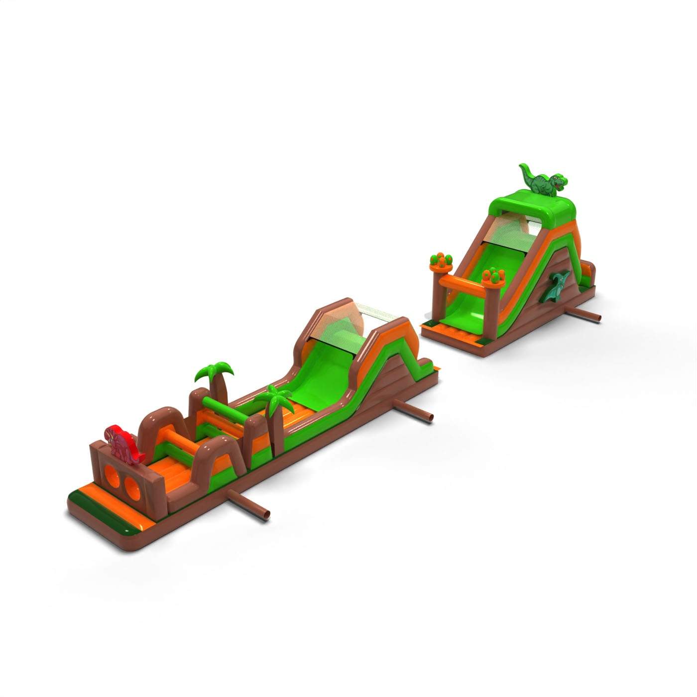 Η ιουρασική ατμόσφαιρα και το εντυπωσιακό μήκος της διαδρομής κάνουν αυτό το αξιοθέατο αμέσως εντυπωσιακό και δημιουργούν έντονα συναισθήματα στους συμμετέχοντες. Η εκτεταμένη διαδρομή εμποδίων εξασφαλίζει δυναμική διασκέδαση, καλή χωρητικότητα και ομαλή κίνηση των συμμετεχόντων ακόμη και σε υψηλή πληρότητα της εκδήλωσης. Η δομή είναι σχεδιασμένη για εντατική χρήση προς ενοικίαση, προσφέροντας σταθερότητα και αντοχή στη συχνή χρήση. Χάρη στο καθολικό θέμα των δεινοσαύρων, η πίστα είναι πολύ δημοφιλής στους πελάτες και αποτελεί αποδεδειγμένα μέρος της προσφοράς εκδηλώσεων. Ταιριάζει εξαιρετικά σε ζώνες με θέμα "Jurassic", μεγάλα πικνίκ και ημέρες πόλης, όπου χρειάζεστε μια ατραξιόν που εντυπωσιάζει και εξυπηρετεί πολλούς ανθρώπους σε σύντομο χρονικό διάστημα.