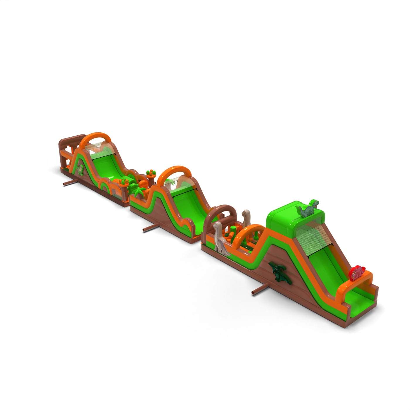 Η μνημειώδης πίστα σε ατμόσφαιρα δεινοσαύρου δημιουργεί μια θεαματική ζώνη διασκέδασης που γίνεται το επίκεντρο κάθε εκδήλωσης. Η πολύ μεγάλη και ποικίλη διαδρομή εμποδίων επιτρέπει έντονο ανταγωνισμό, υψηλή εναλλαγή συμμετεχόντων και μακρά διατήρηση του ενδιαφέροντος για την ατραξιόν. Πρόκειται για μια επαγγελματική κατασκευή προετοιμασμένη για μεγάλες εκδηλώσεις, όπου μετράει η σταθερότητα, η ανθεκτικότητα και η απροβλημάτιστη λειτουργία. Αυτός ο τύπος πίστας είναι ένα ισχυρό επενδυτικό προϊόν, που συχνά επιλέγεται από πελάτες που αναζητούν μεγάλης κλίμακας αξιοθέατα με υψηλές δυνατότητες κέρδους. Θα λειτουργήσει καλύτερα για μαζικές εκδηλώσεις, φεστιβάλ και μεγάλες υπαίθριες παραγωγές, όπου η κλίμακα, το θέαμα και η αξιόπιστη χωρητικότητα καθ' όλη τη διάρκεια της ημέρας είναι σημαντικά.