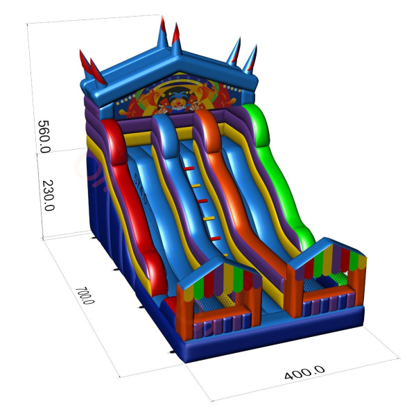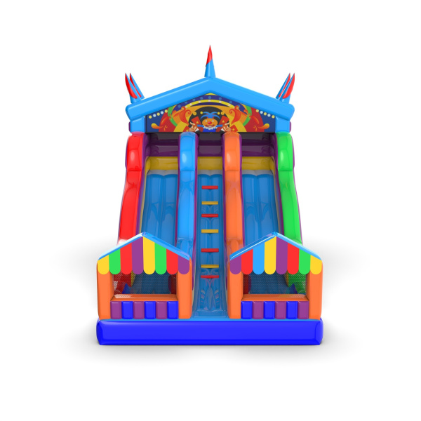 Το Διπλή τσουλήθρα με θέμα πανηγύρι είναι ένα φανταστικό φουσκωτό για παιδιά και εφήβους. Συνδυάζεται τέλεια με τις υπόλοιπες ατραξιόν μας σε διάφορα θέματα. Το Διπλή τσουλήθρα με θέμα πανηγύρι τραβά αμέσως την προσοχή των παιδιών μόλις εμφανιστεί στον ορίζοντα. Οι μικροί επισκέπτες των εκδηλώσεων λατρεύουν το ξέγνοιαστο παιχνίδι – γι’ αυτό αυτή η τσουλήθρα μπορεί να γίνει μία από τις πιο δημοφιλείς ατραξιόν στη συλλογή σου. Τα φουσκωτά αυτής της κατηγορίας είναι εντυπωσιακά, γεμάτα διακοσμητικά και στοιχεία που προσκαλούν τα παιδιά σε ατέλειωτες ώρες παιχνιδιού στον καθαρό αέρα.