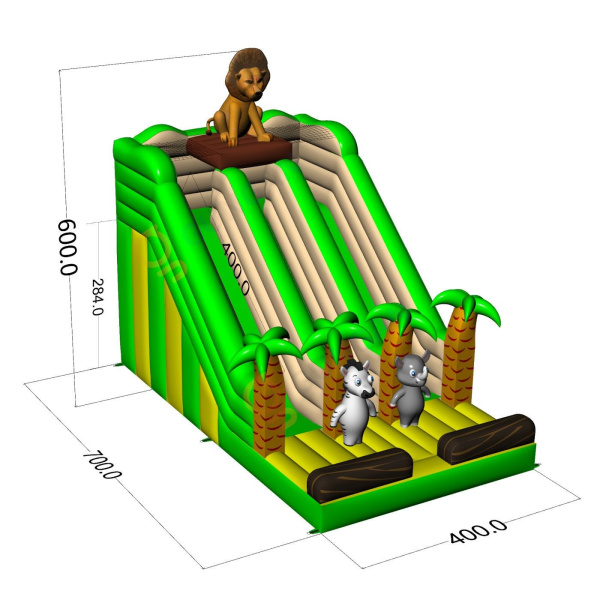 Το Διπλή φουσκωτή διαφάνεια με θέμα ζούγκλα είναι ένα φανταστικό φουσκωτό για παιδιά και εφήβους. Συνδυάζεται τέλεια με τις υπόλοιπες ατραξιόν μας σε διάφορα θέματα. Το Διπλή φουσκωτή διαφάνεια με θέμα ζούγκλα τραβά αμέσως την προσοχή των παιδιών μόλις εμφανιστεί στον ορίζοντα. Οι μικροί επισκέπτες των εκδηλώσεων λατρεύουν το ξέγνοιαστο παιχνίδι – γι’ αυτό αυτή η τσουλήθρα μπορεί να γίνει μία από τις πιο δημοφιλείς ατραξιόν στη συλλογή σου. Τα φουσκωτά αυτής της κατηγορίας είναι εντυπωσιακά, γεμάτα διακοσμητικά και στοιχεία που προσκαλούν τα παιδιά σε ατέλειωτες ώρες παιχνιδιού στον καθαρό αέρα.