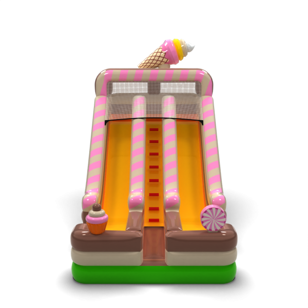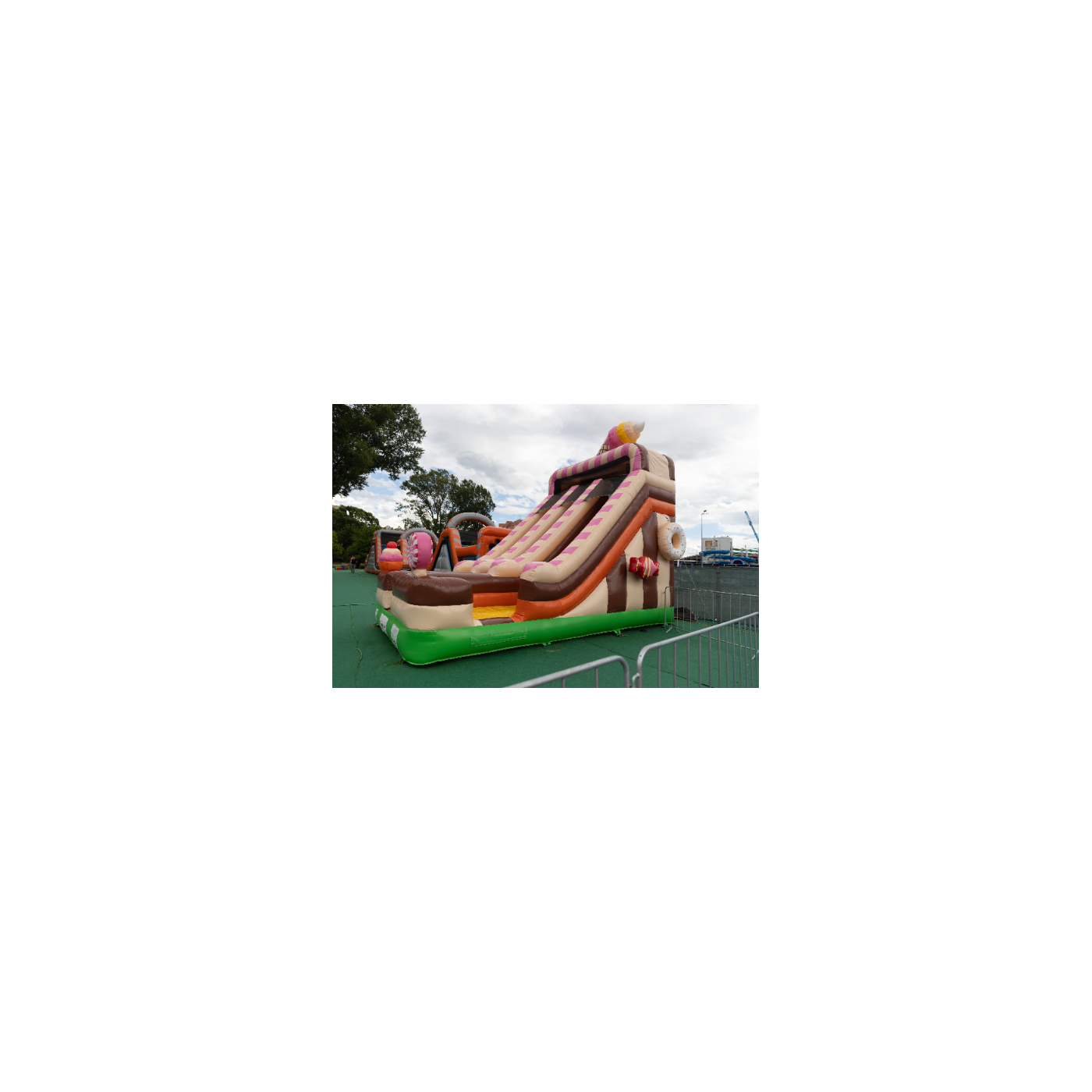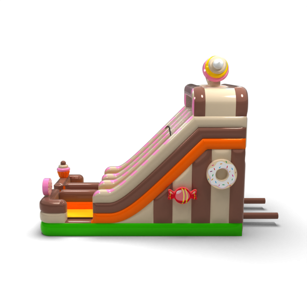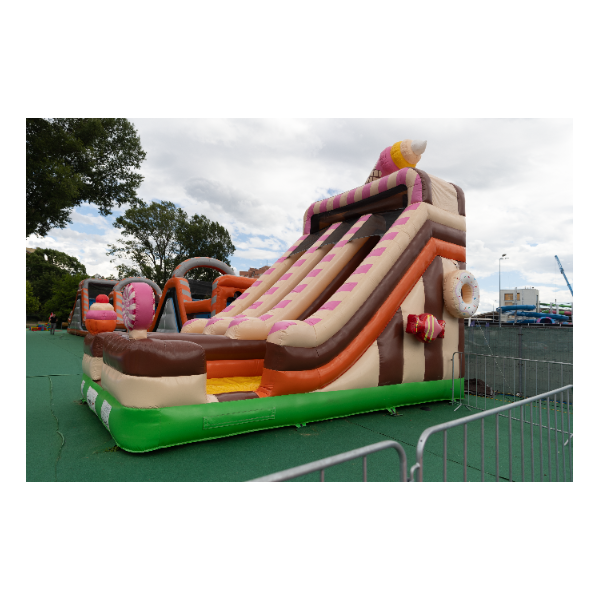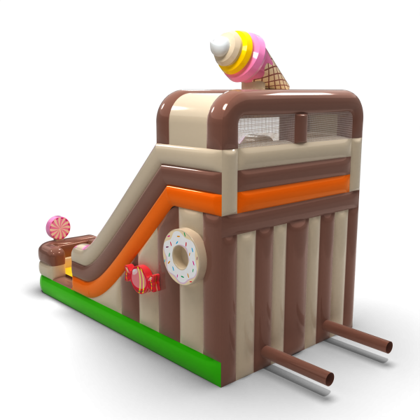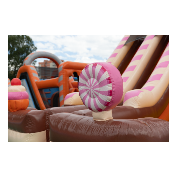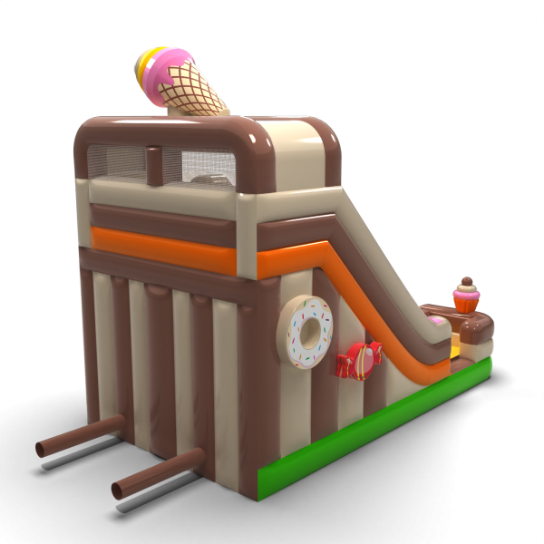Η διπλή διογκώσιμη τσουλήθρα με θέμα τα γλυκά είναι ένα μοναδικό αξιοθέατο που θα κάνει κάθε εκδήλωση μια πολύχρωμη γιορτή χαράς! Με γλυκές παστέλ διακοσμήσεις, αυτή η φουσκωτή ενθαρρύνει τα παιδιά να πηδήξουν, να γλιστρήσουν και να ανακαλύψουν τον μαγικό κόσμο της καραμέλας. Ιδανικό για φεστιβάλ, γενέθλια και άλλες υπαίθριες εκδηλώσεις, αυτό το προϊόν θα προσφέρει αξέχαστες στιγμές διασκέδασης σε ένα ασφαλές περιβάλλον, όπου τα μικρά παιδιά μπορούν να εκπληρώσουν τα όνειρά τους για γλυκιά περιπέτεια!
