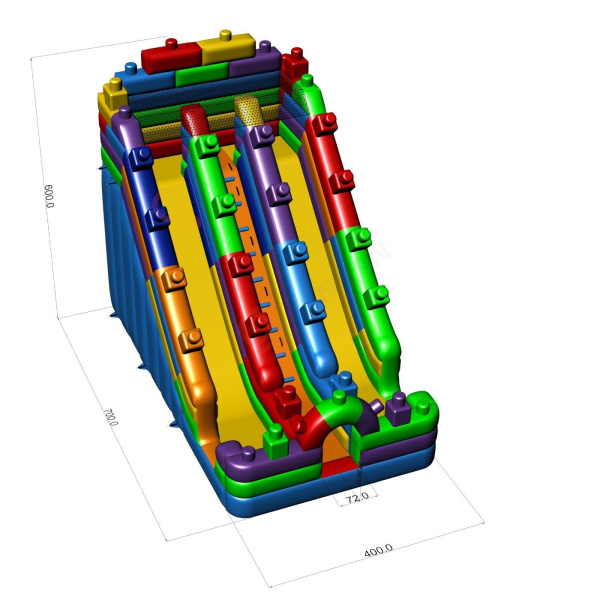 Το Διπλή φουσκωτή τσουλήθρα Χρωματιστά μπλοκ είναι ένα φανταστικό φουσκωτό για παιδιά και εφήβους. Συνδυάζεται τέλεια με τις υπόλοιπες ατραξιόν μας σε διάφορα θέματα. Το Διπλή φουσκωτή τσουλήθρα Χρωματιστά μπλοκ τραβά αμέσως την προσοχή των παιδιών μόλις εμφανιστεί στον ορίζοντα. Οι μικροί επισκέπτες των εκδηλώσεων λατρεύουν το ξέγνοιαστο παιχνίδι – γι’ αυτό αυτή η τσουλήθρα μπορεί να γίνει μία από τις πιο δημοφιλείς ατραξιόν στη συλλογή σου. Τα φουσκωτά αυτής της κατηγορίας είναι εντυπωσιακά, γεμάτα διακοσμητικά και στοιχεία που προσκαλούν τα παιδιά σε ατέλειωτες ώρες παιχνιδιού στον καθαρό αέρα.