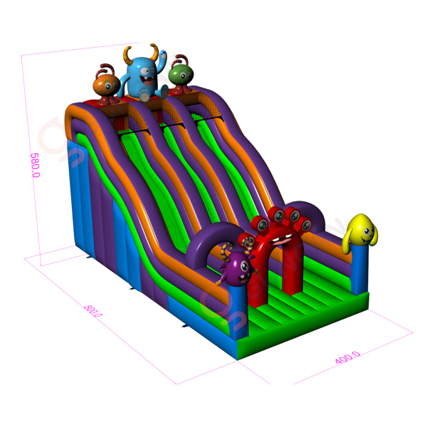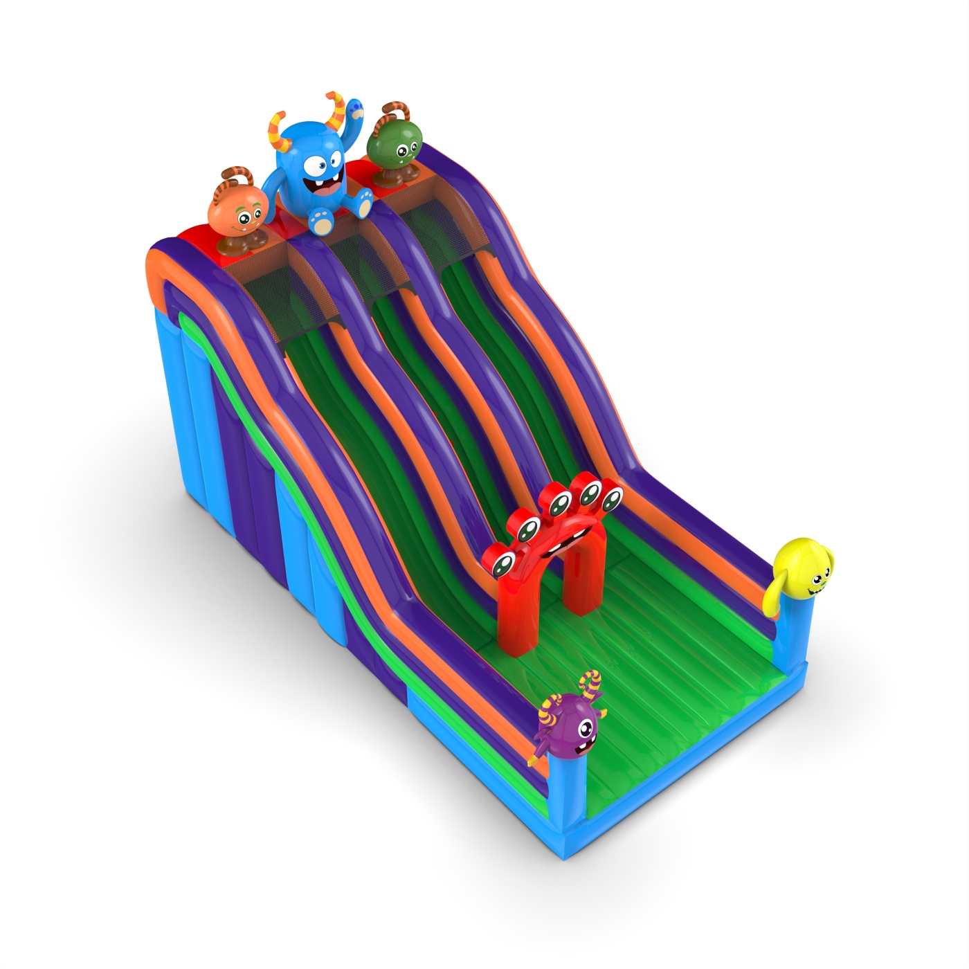 Προσφέρετε στα παιδιά συναρπαστική διασκέδαση με τη διπλή μας τσουλήθρα σε ένα πολύχρωμο θέμα με τέρατα! Οι χιουμοριστικοί χαρακτήρες και τα ζωηρά χρώματα εγγυώνται ξέγνοιαστη ψυχαγωγία, ιδανική για φεστιβάλ, οικογενειακά πικνίκ και άλλες υπαίθριες εκδηλώσεις. Μια ατραξιόν που κάνει πάντα τα μικρά παιδιά να χαμογελούν και να ενδιαφέρονται!