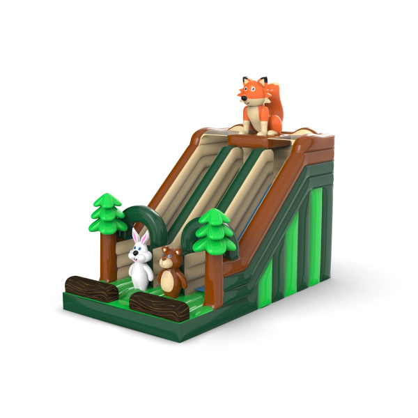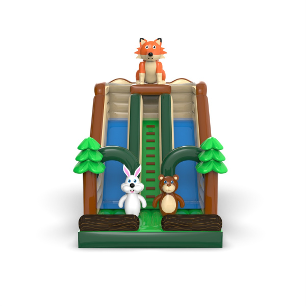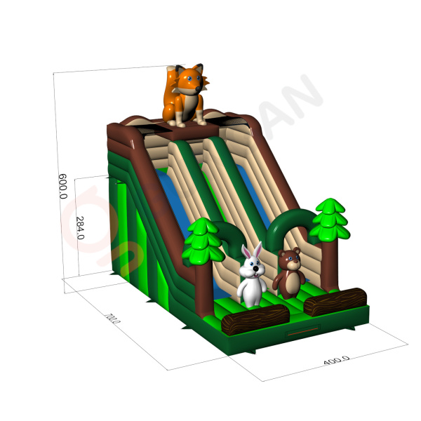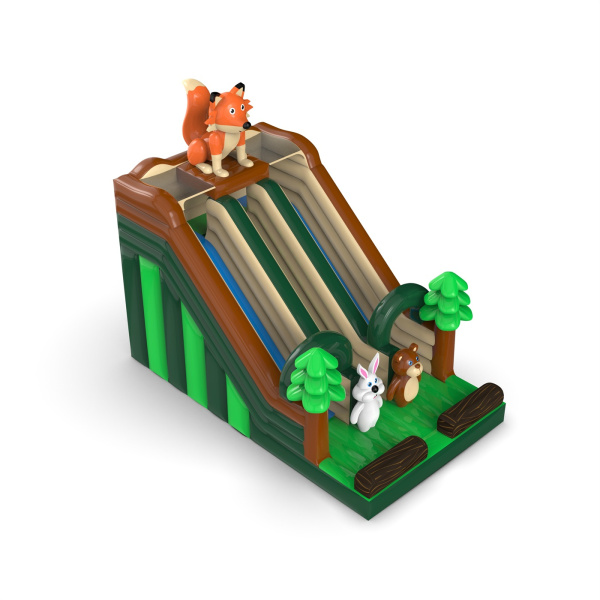 Το Διπλή διαφάνεια με θέμα το δάσος είναι ένα φανταστικό φουσκωτό για παιδιά και εφήβους. Συνδυάζεται τέλεια με τις υπόλοιπες ατραξιόν μας σε διάφορα θέματα. Το Διπλή διαφάνεια με θέμα το δάσος τραβά αμέσως την προσοχή των παιδιών μόλις εμφανιστεί στον ορίζοντα. Οι μικροί επισκέπτες των εκδηλώσεων λατρεύουν το ξέγνοιαστο παιχνίδι – γι’ αυτό αυτή η τσουλήθρα μπορεί να γίνει μία από τις πιο δημοφιλείς ατραξιόν στη συλλογή σου. Τα φουσκωτά αυτής της κατηγορίας είναι εντυπωσιακά, γεμάτα διακοσμητικά και στοιχεία που προσκαλούν τα παιδιά σε ατέλειωτες ώρες παιχνιδιού στον καθαρό αέρα.