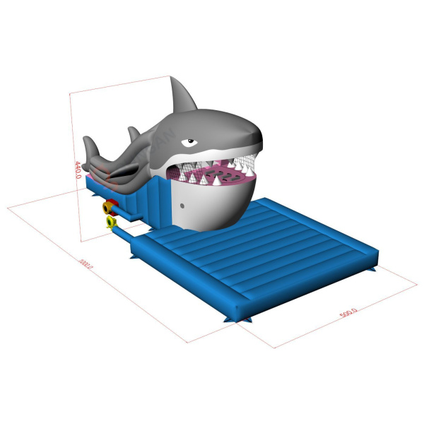 Μην σας φάνε! Ένα ισχυρό φουσκωτό σε θέμα καρχαρία. Πηδήξτε στο λαιμό του γίγαντα. Γλιστρήστε μέσα από τους τεράστιους κυνόδοντες. Είστε έτοιμοι για μια δόση από την καλύτερη διασκέδαση;