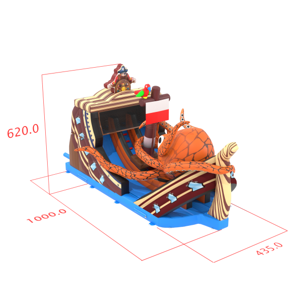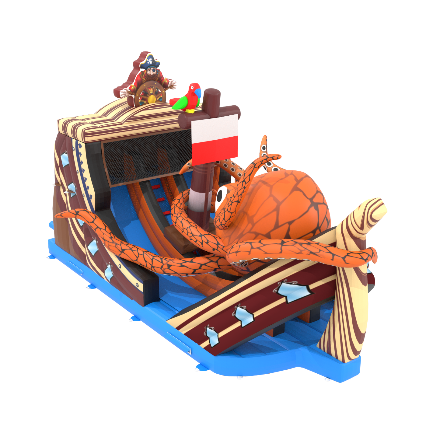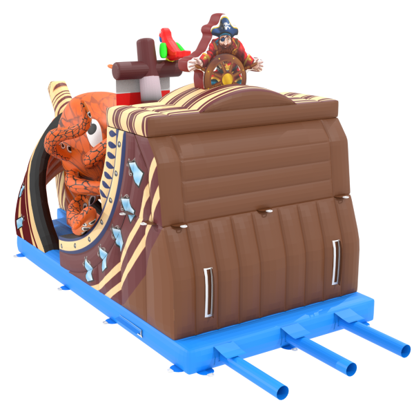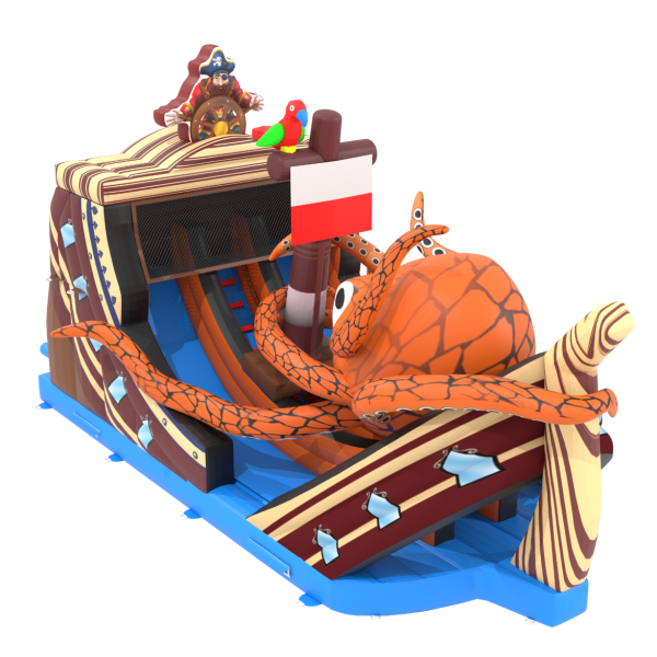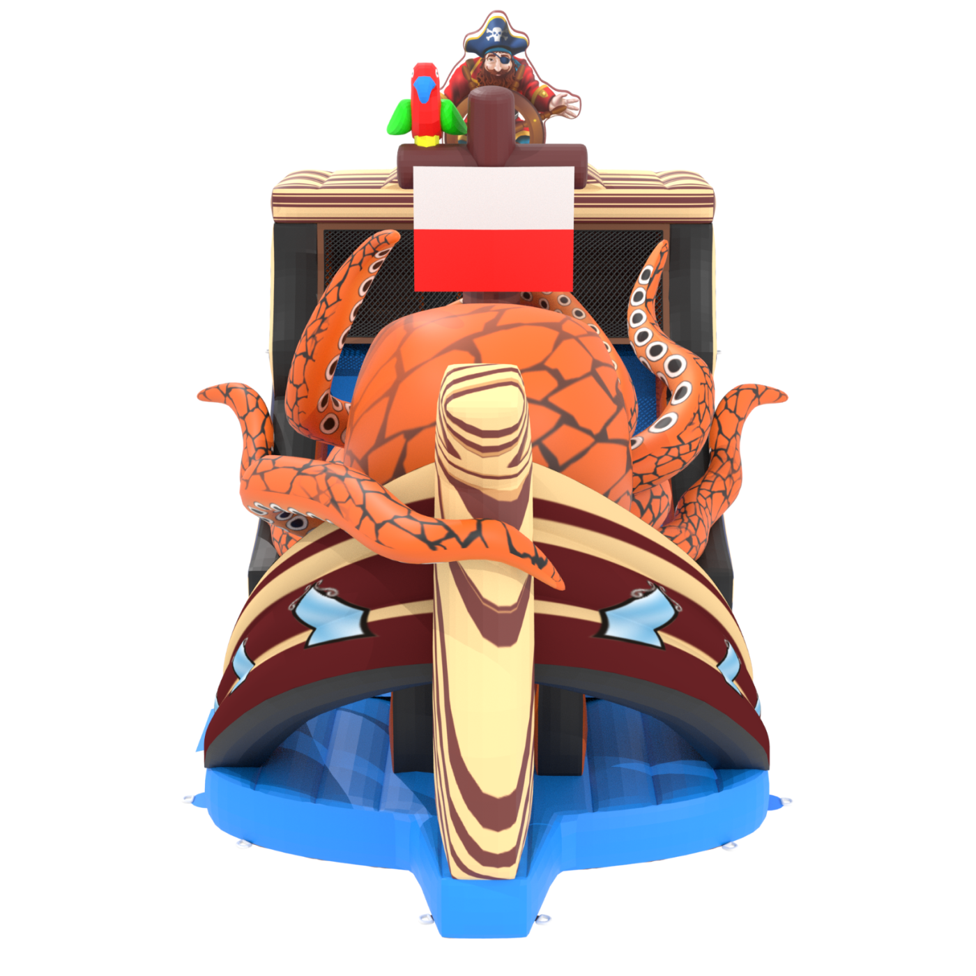 Το Φουσκωτή διαφάνεια Πειρατικό πλοίο με χταπόδι είναι ένα φανταστικό φουσκωτό για παιδιά και εφήβους. Συνδυάζεται τέλεια με τις υπόλοιπες ατραξιόν μας σε διάφορα θέματα. Το Φουσκωτή διαφάνεια Πειρατικό πλοίο με χταπόδι τραβά αμέσως την προσοχή των παιδιών μόλις εμφανιστεί στον ορίζοντα. Οι μικροί επισκέπτες των εκδηλώσεων λατρεύουν το ξέγνοιαστο παιχνίδι – γι’ αυτό αυτή η τσουλήθρα μπορεί να γίνει μία από τις πιο δημοφιλείς ατραξιόν στη συλλογή σου. Τα φουσκωτά αυτής της κατηγορίας είναι εντυπωσιακά, γεμάτα διακοσμητικά και στοιχεία που προσκαλούν τα παιδιά σε ατέλειωτες ώρες παιχνιδιού στον καθαρό αέρα.