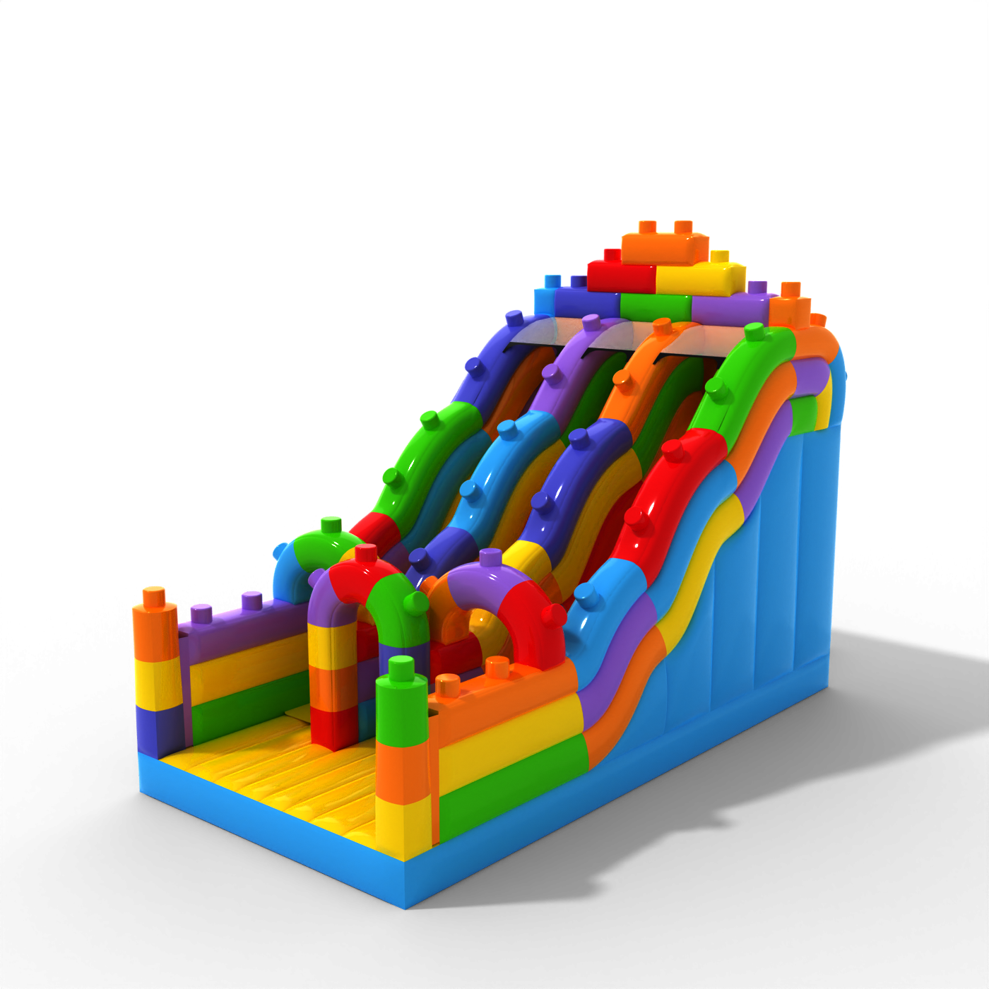 Το Διπλή ανοιχτή τσουλήθρα με πολύχρωμο μοτίβο από μπλοκ είναι ένα φανταστικό φουσκωτό για παιδιά και εφήβους. Συνδυάζεται τέλεια με τις υπόλοιπες ατραξιόν μας σε διάφορα θέματα. Το Διπλή ανοιχτή τσουλήθρα με πολύχρωμο μοτίβο από μπλοκ τραβά αμέσως την προσοχή των παιδιών μόλις εμφανιστεί στον ορίζοντα. Οι μικροί επισκέπτες των εκδηλώσεων λατρεύουν το ξέγνοιαστο παιχνίδι – γι’ αυτό αυτή η τσουλήθρα μπορεί να γίνει μία από τις πιο δημοφιλείς ατραξιόν στη συλλογή σου. Τα φουσκωτά αυτής της κατηγορίας είναι εντυπωσιακά, γεμάτα διακοσμητικά και στοιχεία που προσκαλούν τα παιδιά σε ατέλειωτες ώρες παιχνιδιού στον καθαρό αέρα.