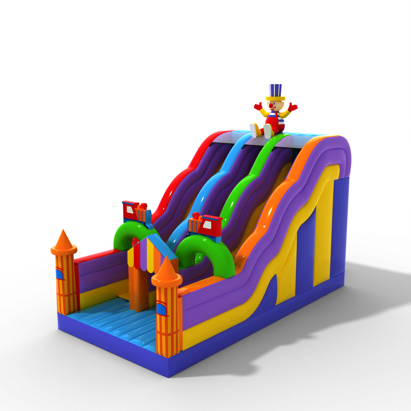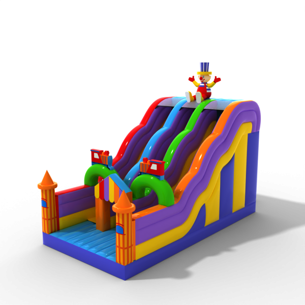 Το Διπλή ανοιχτή τσουλήθρα με θέμα πανηγύρι είναι ένα φανταστικό φουσκωτό για παιδιά και εφήβους. Συνδυάζεται τέλεια με τις υπόλοιπες ατραξιόν μας σε διάφορα θέματα. Το Διπλή ανοιχτή τσουλήθρα με θέμα πανηγύρι τραβά αμέσως την προσοχή των παιδιών μόλις εμφανιστεί στον ορίζοντα. Οι μικροί επισκέπτες των εκδηλώσεων λατρεύουν το ξέγνοιαστο παιχνίδι – γι’ αυτό αυτή η τσουλήθρα μπορεί να γίνει μία από τις πιο δημοφιλείς ατραξιόν στη συλλογή σου. Τα φουσκωτά αυτής της κατηγορίας είναι εντυπωσιακά, γεμάτα διακοσμητικά και στοιχεία που προσκαλούν τα παιδιά σε ατέλειωτες ώρες παιχνιδιού στον καθαρό αέρα.