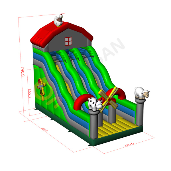 Το Διπλή ανοιχτή διαφάνεια με θέμα φάρμας είναι ένα φανταστικό φουσκωτό για παιδιά και εφήβους. Συνδυάζεται τέλεια με τις υπόλοιπες ατραξιόν μας σε διάφορα θέματα. Το Διπλή ανοιχτή διαφάνεια με θέμα φάρμας τραβά αμέσως την προσοχή των παιδιών μόλις εμφανιστεί στον ορίζοντα. Οι μικροί επισκέπτες των εκδηλώσεων λατρεύουν το ξέγνοιαστο παιχνίδι – γι’ αυτό αυτή η τσουλήθρα μπορεί να γίνει μία από τις πιο δημοφιλείς ατραξιόν στη συλλογή σου. Τα φουσκωτά αυτής της κατηγορίας είναι εντυπωσιακά, γεμάτα διακοσμητικά και στοιχεία που προσκαλούν τα παιδιά σε ατέλειωτες ώρες παιχνιδιού στον καθαρό αέρα.