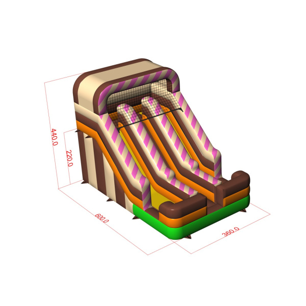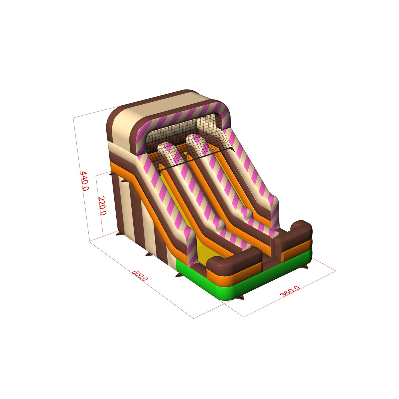 Η διπλή φουσκωτή τσουλήθρα με θέμα τα γλυκά είναι διασκέδαση για όλη την οικογένεια και όχι μόνο! Σχεδιασμένη για να ενθουσιάσει και να εκπληρώσει τα όνειρα των μικρότερων συμμετεχόντων στη φουσκωτή ατραξιόν.