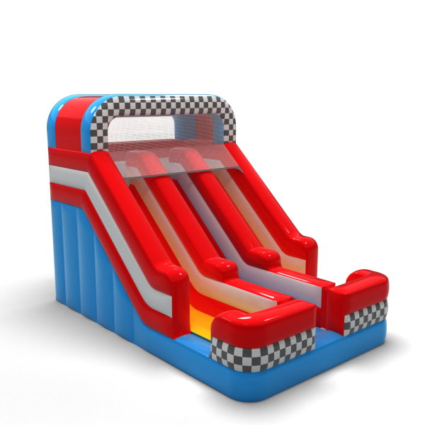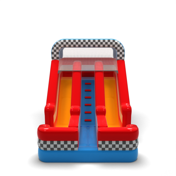Η διπλή διογκώσιμη μίνι τσουλήθρα σε θέμα αυτοκινήτου είναι η τέλεια ατραξιόν για όλους τους λάτρεις των αγώνων και των αυτοκινήτων! Αυτό το δυναμικό, πολύχρωμο και ασφαλές προϊόν θα κάνει κάθε υπαίθρια εκδήλωση αξέχαστη. Η τσουλήθρα είναι ιδανική για πάρτι γενεθλίων, φεστιβάλ, οικογενειακά πικνίκ και κάθε είδους θεματικές εκδηλώσεις.