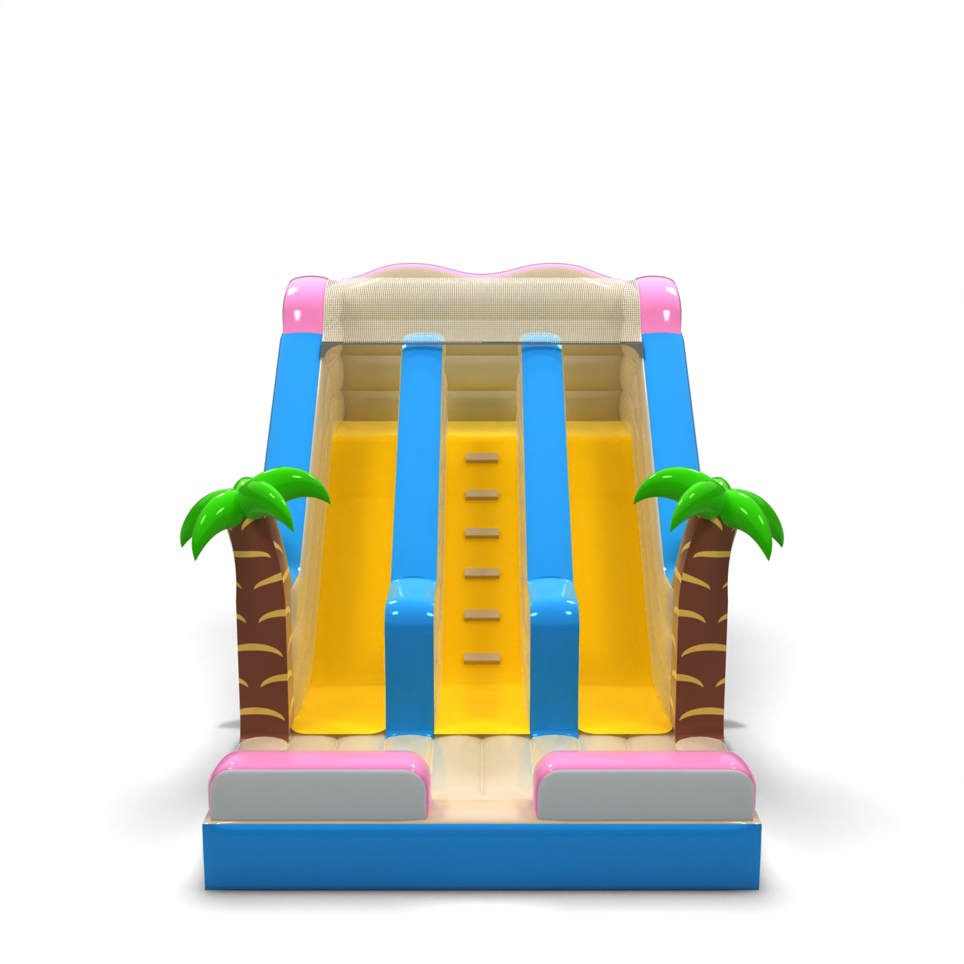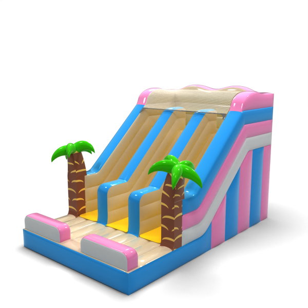 Η διπλή φουσκωτή μίνι τσουλήθρα με θέμα τη Χαβάη είναι μια υπέροχη ατραξιόν που θα μεταφέρει κάθε παιδί στην ατμόσφαιρα εξωτικών διακοπών σε ένα τροπικό νησί. Με ένα μοναδικό σχέδιο εμπνευσμένο από τις παραλίες, τους φοίνικες και το ηλιόλουστο κλίμα της Χαβάης, αυτή η τσουλήθρα θα γίνει ανάρπαστη σε κάθε υπαίθριο πάρτι.