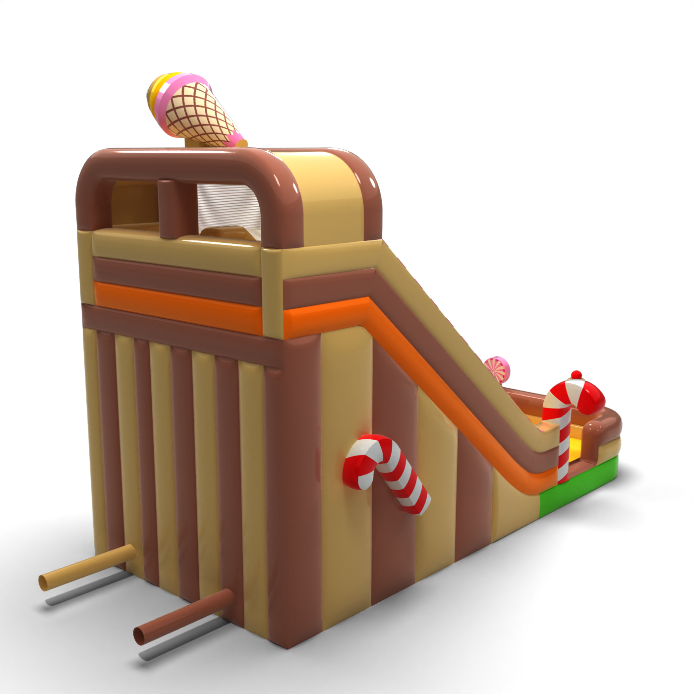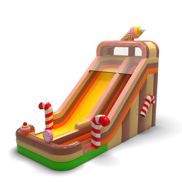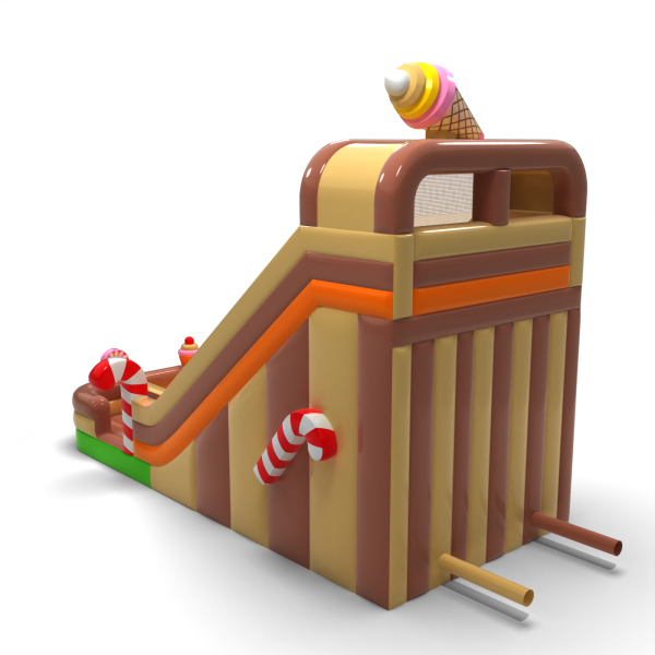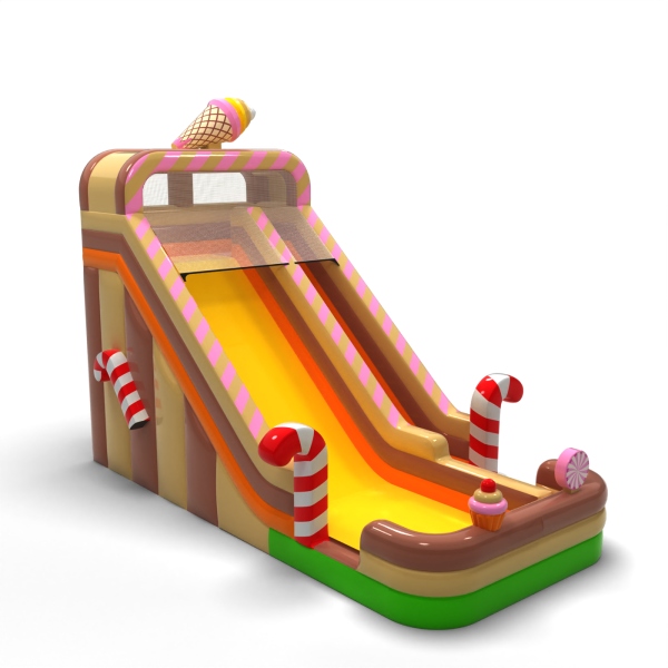 Η διπλή διογκώσιμη τσουλήθρα σε θέμα καραμέλας με ύψος 7,3 μ. είναι η τέλεια επιλογή για κάθε υπαίθρια εκδήλωση. Οι δύο πίστες τσουλήθρας προσφέρουν περισσότερο ενθουσιασμό, ενώ οι πολύχρωμες λεπτομέρειες και η ανθεκτική κατασκευή εξασφαλίζουν ασφάλεια και εύκολο χειρισμό. Προσθέστε μια γλυκιά πινελιά στην εκδήλωσή σας!