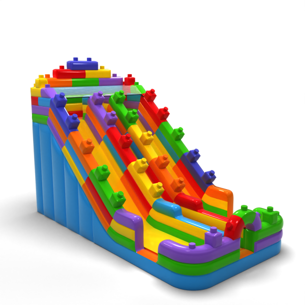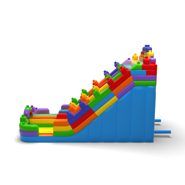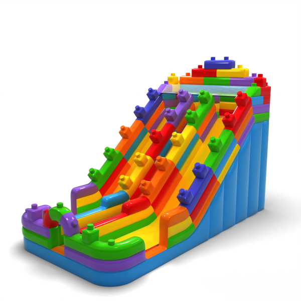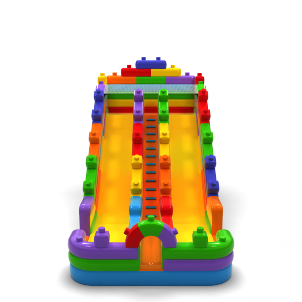 Εκπλήξτε τους συμμετέχοντες με μια διπλή διογκώσιμη τσουλήθρα σε ύψος 6,7 μέτρων με θέμα τα πολύχρωμα τουβλάκια! Οι δύο λωρίδες τσουλήθρας επιτρέπουν τον ανταγωνισμό και τα ζωηρά χρώματα θα τραβήξουν τα βλέμματα κάθε καλεσμένου. Με τη στιβαρή κατασκευή και την εύκολη μεταφορά της, αυτή η ατραξιόν είναι ιδανική για φεστιβάλ και πικνίκ.
