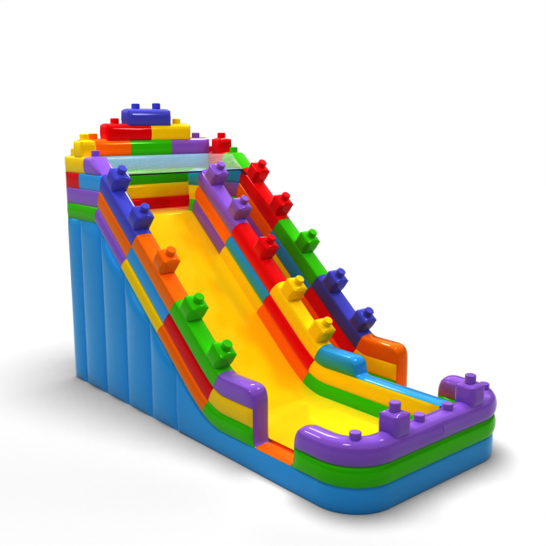 Διευρυμένη φουσκωτή τσουλήθρα με πολύχρωμο μοτίβο από μπλοκ