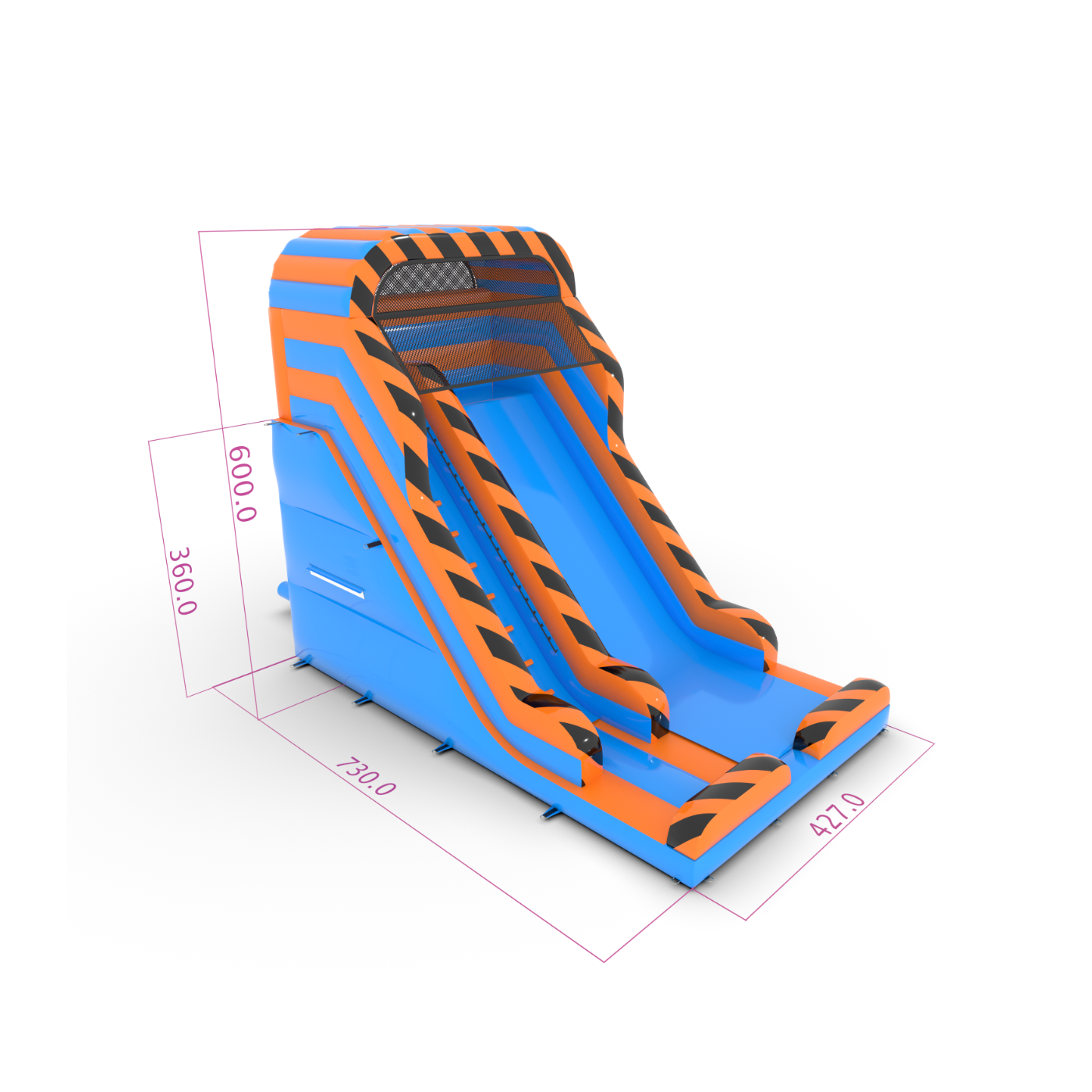 Μια στιβαρή και ευπροσάρμοστη ταινία που θα λειτουργήσει σε οποιοδήποτε σενάριο εκδήλωσης - από τοπικά πικνίκ σε μεγάλες εταιρικές εκδηλώσεις. Η απλή μορφή και τα έντονα χρώματα τεχνικού στυλ τραβούν τα βλέμματα και ταιριάζουν με μια ποικιλία θεμάτων σχεδιασμού. Τα χαρακτηριστικά ασφαλείας της ζώνης αυξάνουν την ασφάλεια των συμμετεχόντων και ο ψηλός σχεδιασμός εγγυάται μια συναρπαστική τσουλήθρα. Ιδανική επιλογή για εταιρείες ενοικίασης που αναζητούν μια ανθεκτική και ευέλικτη ατραξιόν υψηλής ροής για παιδιά ή ενήλικες.