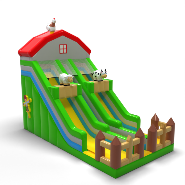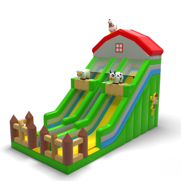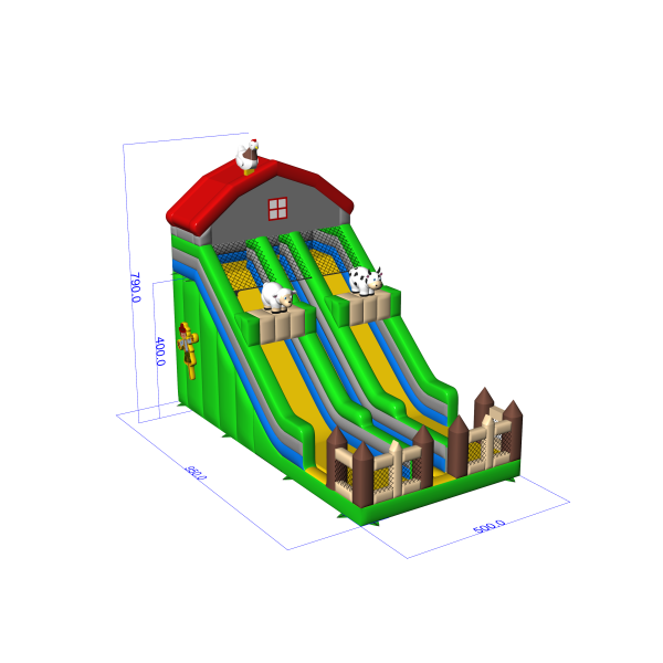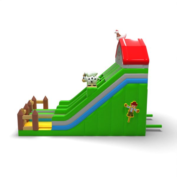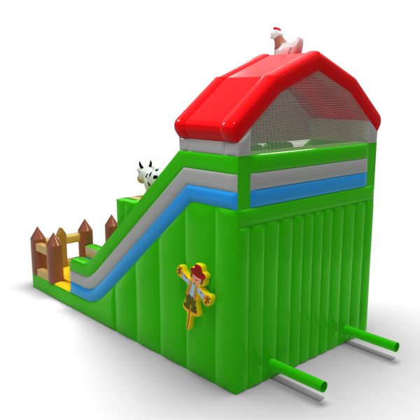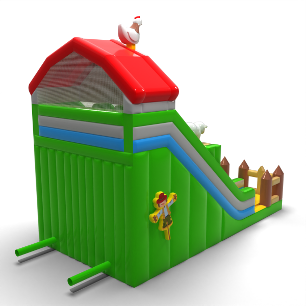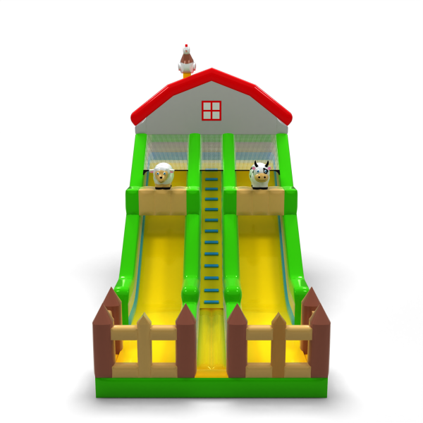 Μια εντυπωσιακή τσουλήθρα με αγροτική ατμόσφαιρα με φιγούρες ζώων και οροφή σε στυλ αχυρώνα είναι ένα αξιοθέατο που προσελκύει τόσο τα παιδιά όσο και τους ενήλικες. Χάρη στο μεγάλο της ύψος και τις δύο φαρδιές πίστες τσουλήθρας, προσφέρει δυναμική διασκέδαση και εξυπηρετεί μεγάλες ομάδες συμμετεχόντων. Είναι ιδανική για θεματικές εκδηλώσεις, κοινοτικές εκδηλώσεις και φεστιβάλ, όπου η προβολή, η απόδοση και ο αντίκτυπος της ατραξιόν είναι σημαντικά.