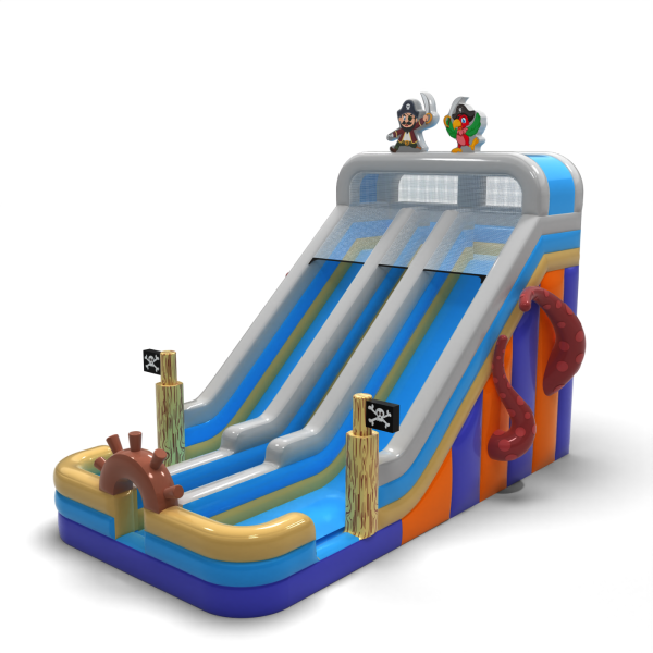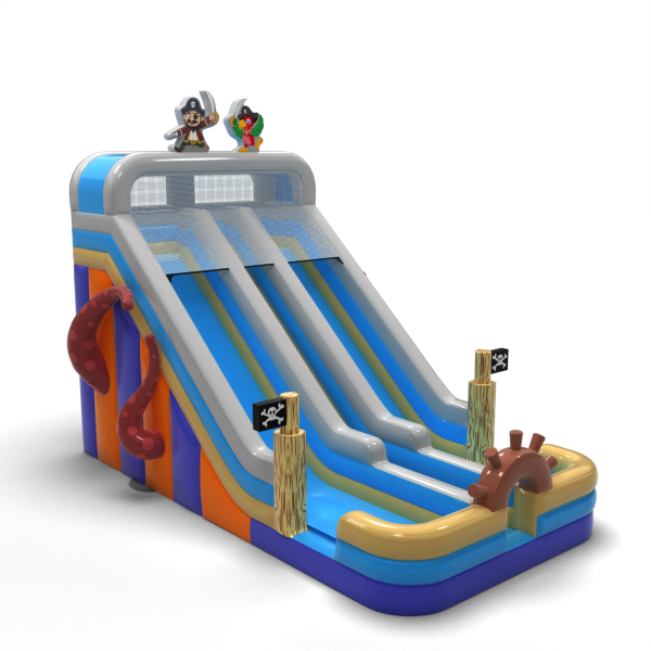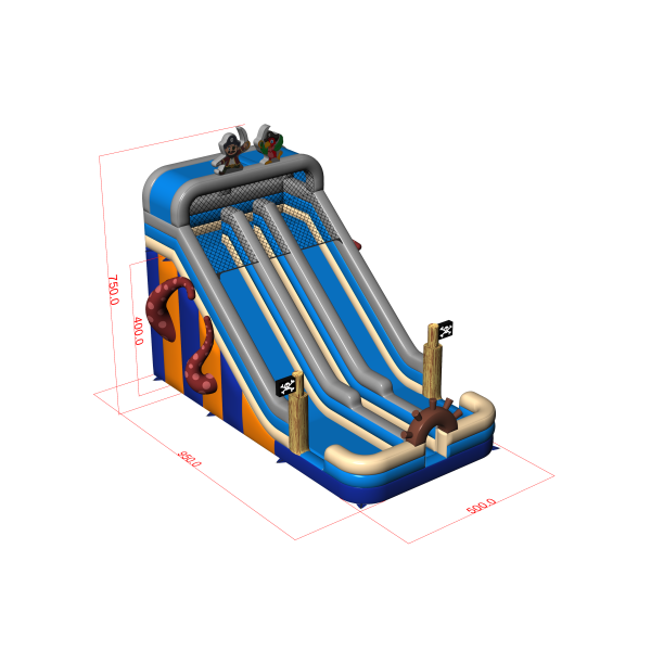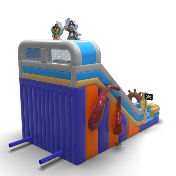 Η διπλή τσουλήθρα σε πειρατικό στιλ είναι για τους μικρούς τυχοδιώκτες. Διακοσμήσεις με τη μορφή σημαιών, πηδαλίων και ενός χταποδιού δίνουν στην ατραξιόν μια ναυτική αίσθηση, η οποία είναι ιδανική για θεματικές υπαίθριες εκδηλώσεις. Δύο ανεξάρτητες πίστες τσουλήθρας αυξάνουν τη χωρητικότητα και μειώνουν τους χρόνους αναμονής. Το μοντέλο είναι ιδανικό για εταιρείες που παρέχουν υπηρεσίες τροφοδοσίας για φεστιβάλ, εκδηλώσεις πόλης και οικογενειακές υπαίθριες εκδηλώσεις.