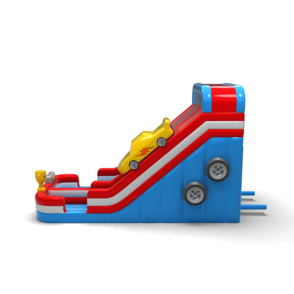 Η κλασική υψηλή τσουλήθρα με μοτίβο αγωνιστικού αυτοκινήτου είναι μια αξιόπιστη ατραξιόν για τους λάτρεις της αυτοκίνησης. Η τσουλήθρα από μεγάλο ύψος και οι διακοσμήσεις σε στυλ ράλι στο μπροστινό μέρος προσθέτουν ενθουσιασμό και προσελκύουν την προσοχή των μικρών. Το μοντέλο είναι ιδανικό για τη συμπλήρωση αθλητικών ζωνών και εκδηλώσεων με θέμα την κίνηση, τον ανταγωνισμό και την ταχύτητα. Εξαιρετικό ως αυτόνομο αξιοθέατο ή ως μέρος ενός μεγαλύτερου θεματικού σετ.